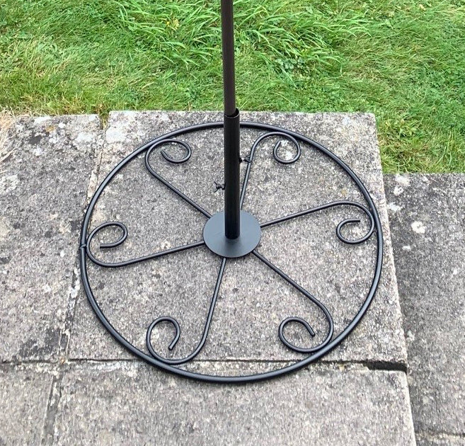 A simple to use metal stand for bird feeding stations, ideal if there is no soft ground available to push the spiked foot of the bird feeding station into.