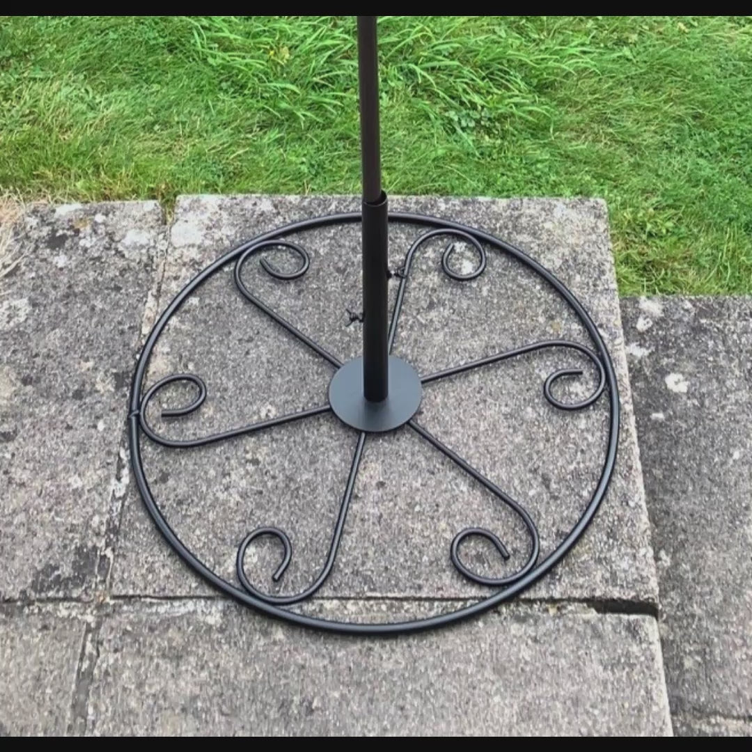 Made from powder coated steel, the stand has a pleasant ornate swirling pattern in the centre and has 2 fixing bolts in the stand to secure the feeding station in place.