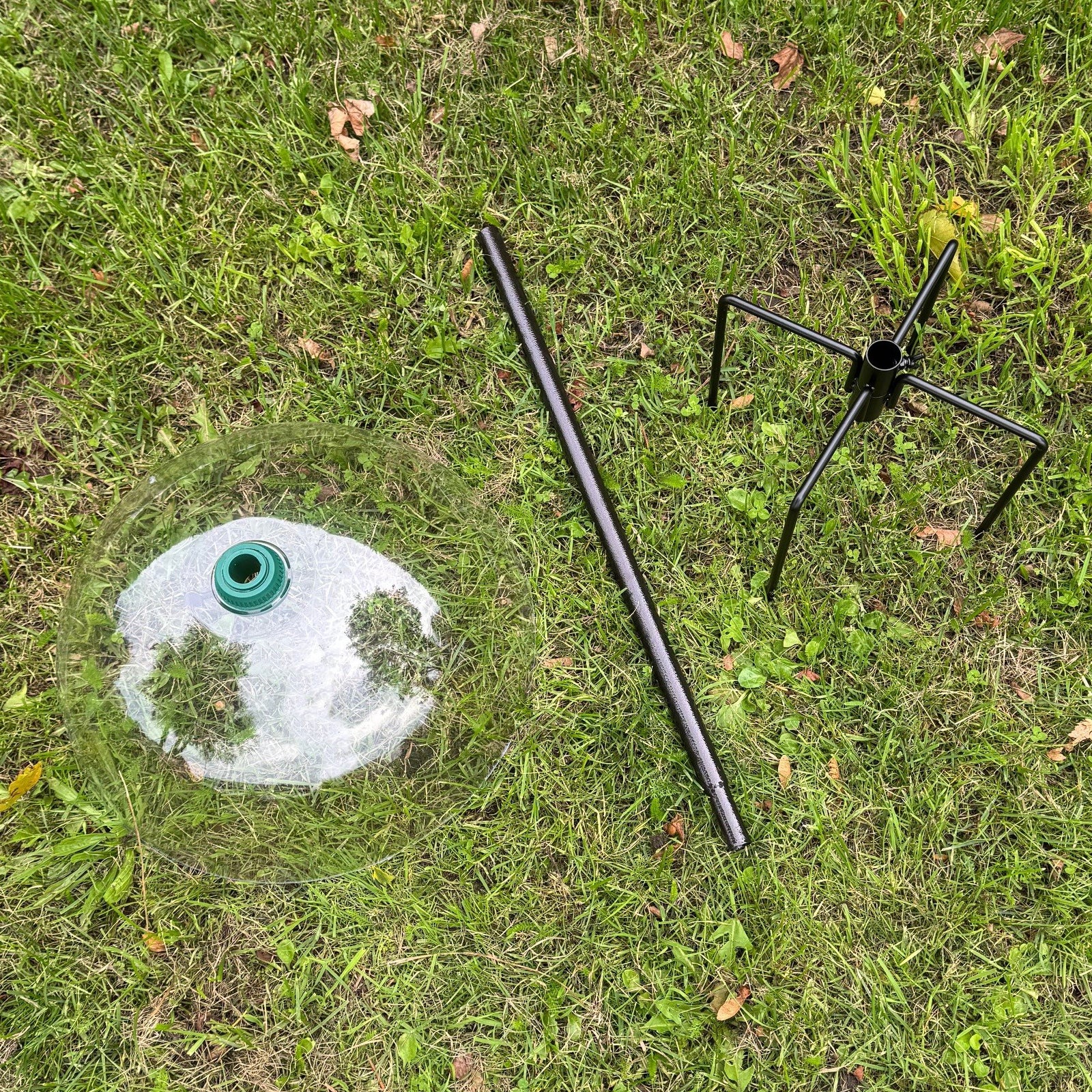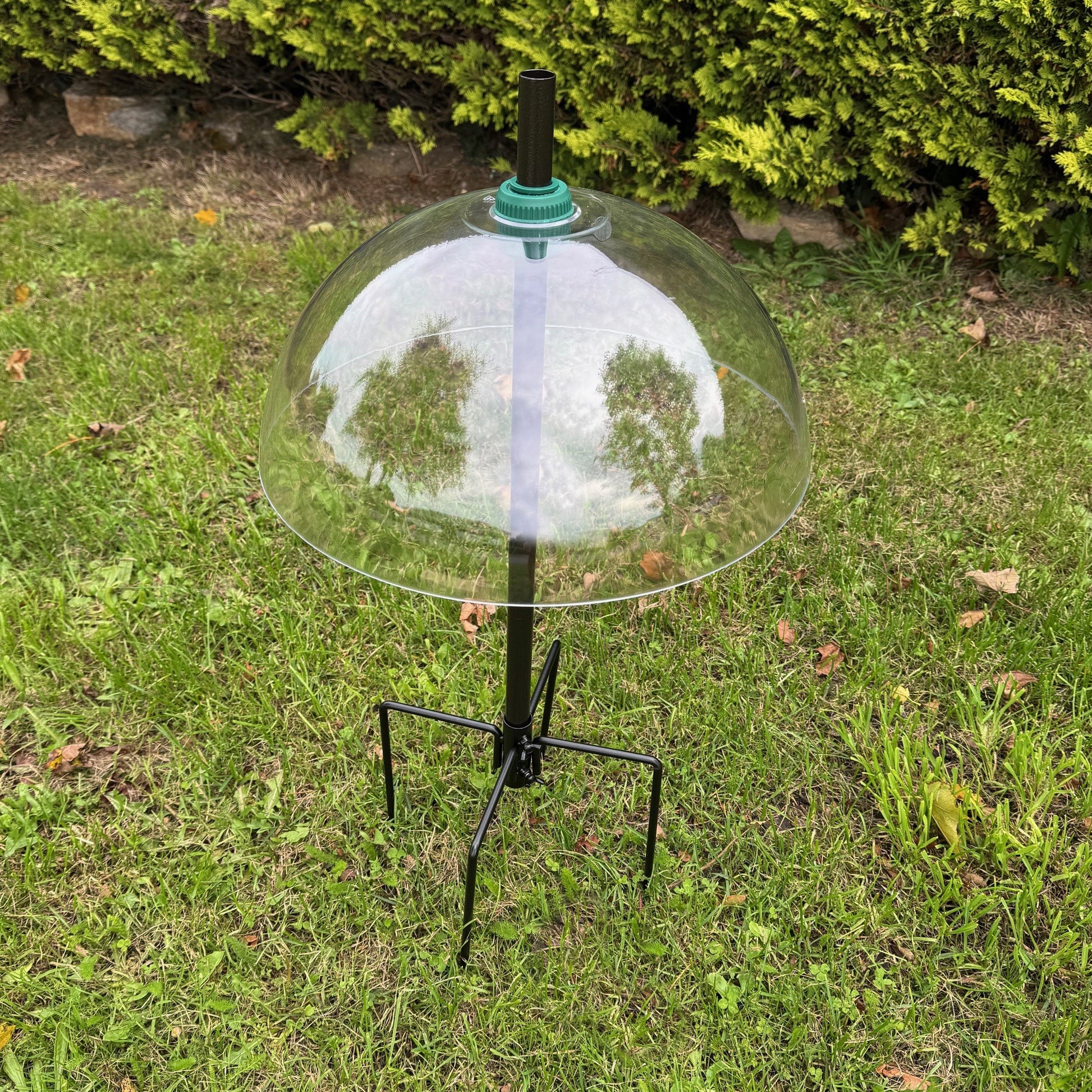 The squirrel baffle is a protective plastic dome, 40cm wide, that has been found to successfully prevent the wily squirrel and other predators from reaching bird food. These super smooth, slippery domes can either be attached to the poles of bird feeding stations or used with the supplied hanging hook to suspend a feeder below.