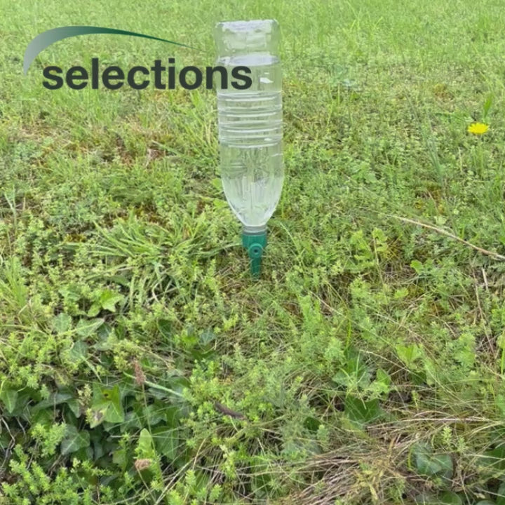 This device turns most plastic bottles into a watering reservoir - perfect for when you are away from your beloved plants. The irrigation kit is gravity fed - it lets water flow out of the base using a tap system - unscrew the easy-to-use tap to achieve the required flow rate of water - the air is let in through a hole punched in top of the bottle.