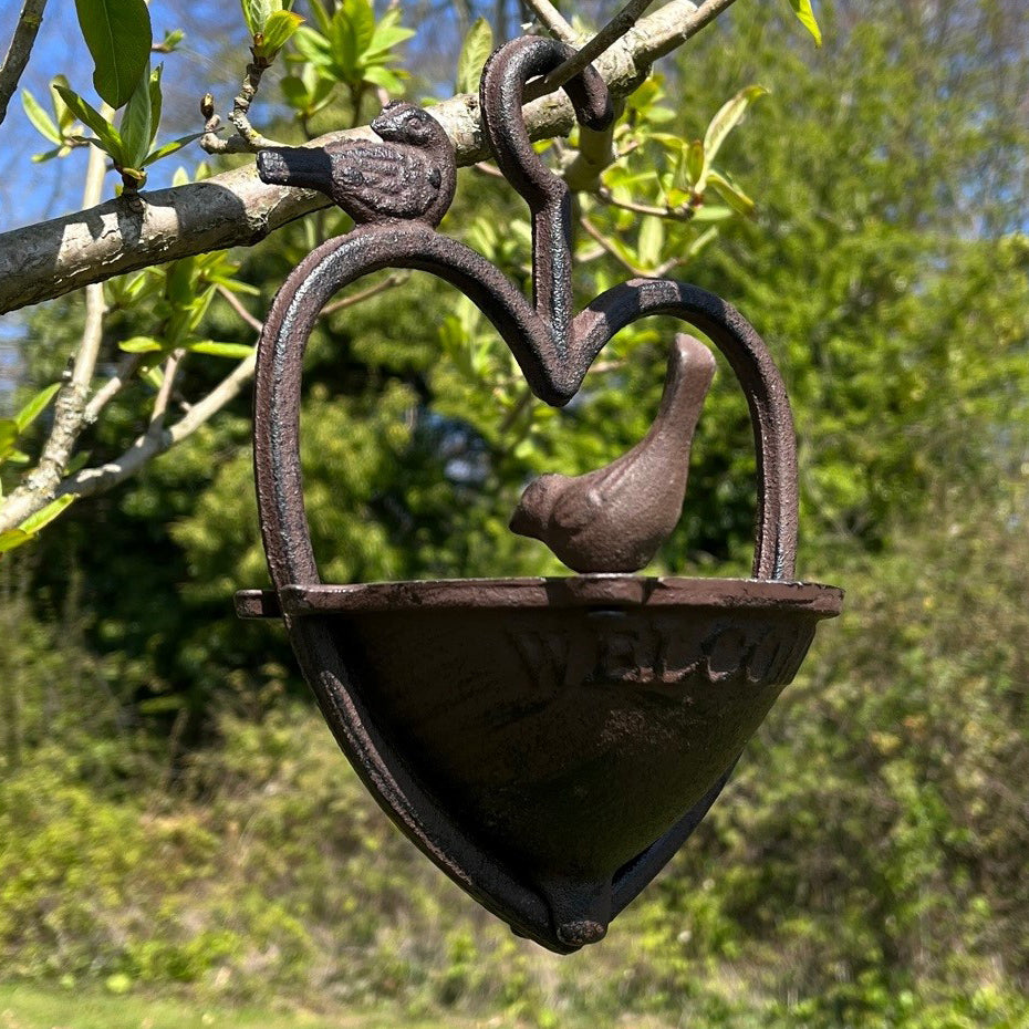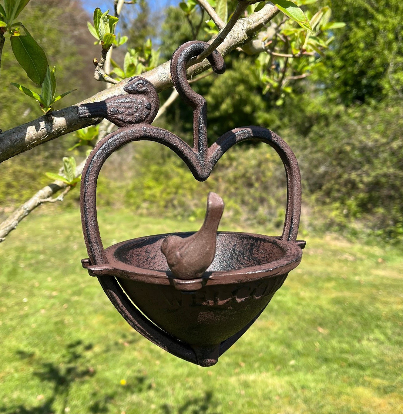 Vintage Hanging Bird Seed Feeder Cast Iron Heart Shape