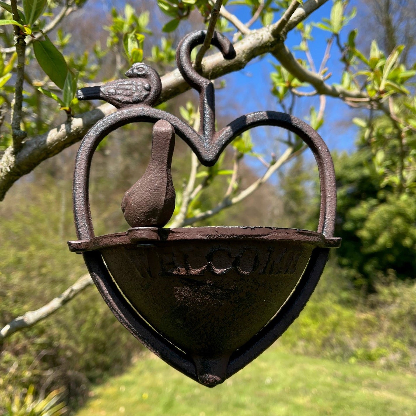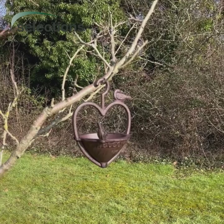 Made from cast iron, it is strong, durable and requires minimal assembly; the main body of the feeder simply slots into the heart shaped frame. A decorative little bird perched on the rim to eat, simply requires attaching to the unit with a cross head screw (included).