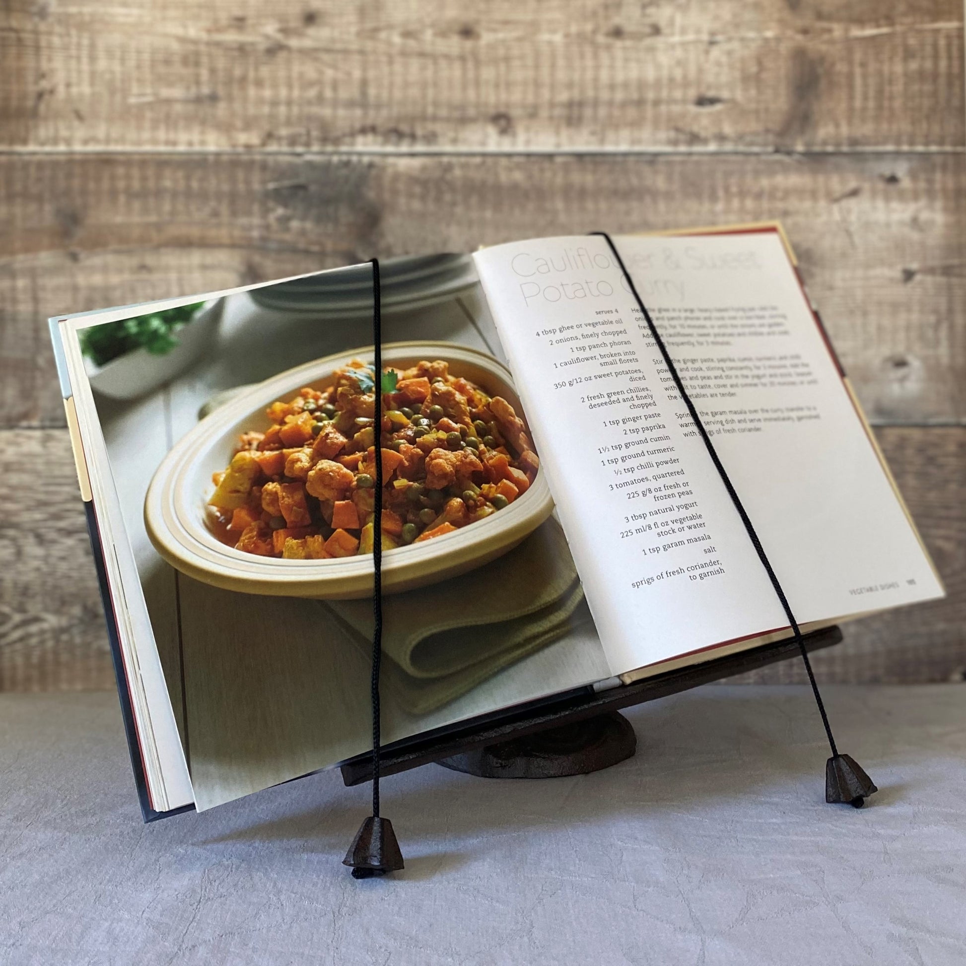 This traditional style cookbook holder is crafted from cast iron and features a solid base for stability while the book holder has hanging weights to keep the pages from flicking shut. Measuring 26cm wide, with a lip at the base to hold the required book, the stand angle can be adjusted to the required reading position.