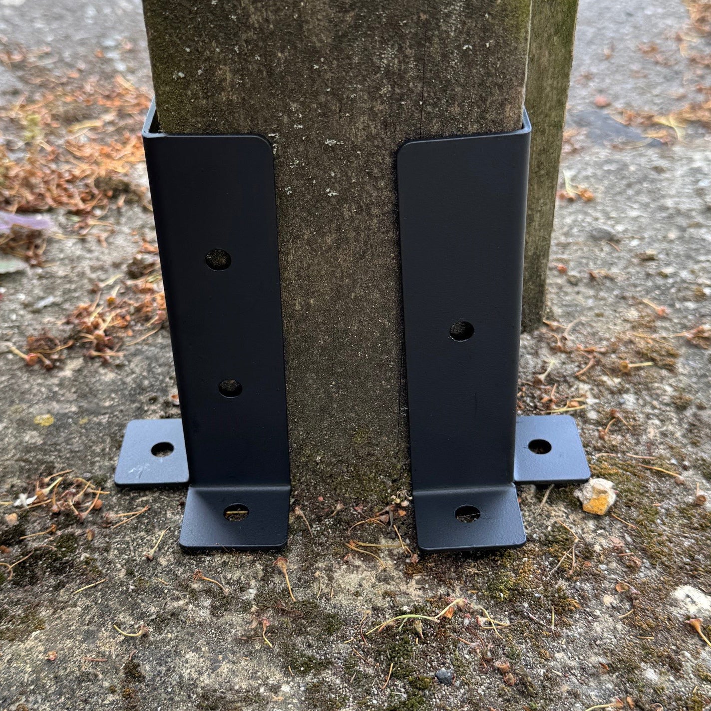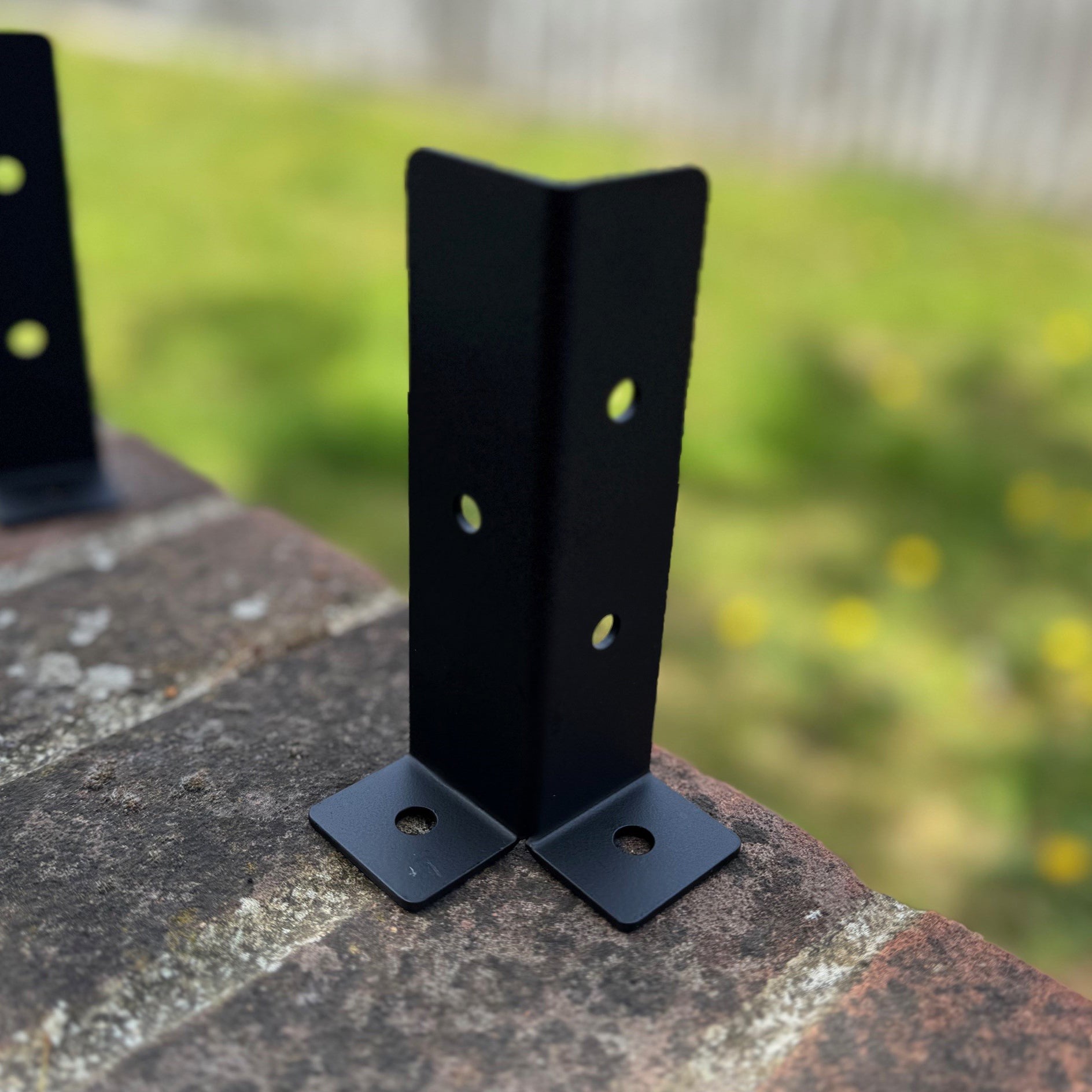 This set of fence post support brackets is a simple and straightforward solution for anchoring and reinforcing posts where the ground is harder and digging is not an option - for example if there is concrete, tarmac or flag stones at the base of your fence posts. Made from sturdy powder coated forged iron, the brackets simply screw to your posts and then to the surface. Fixings are included.