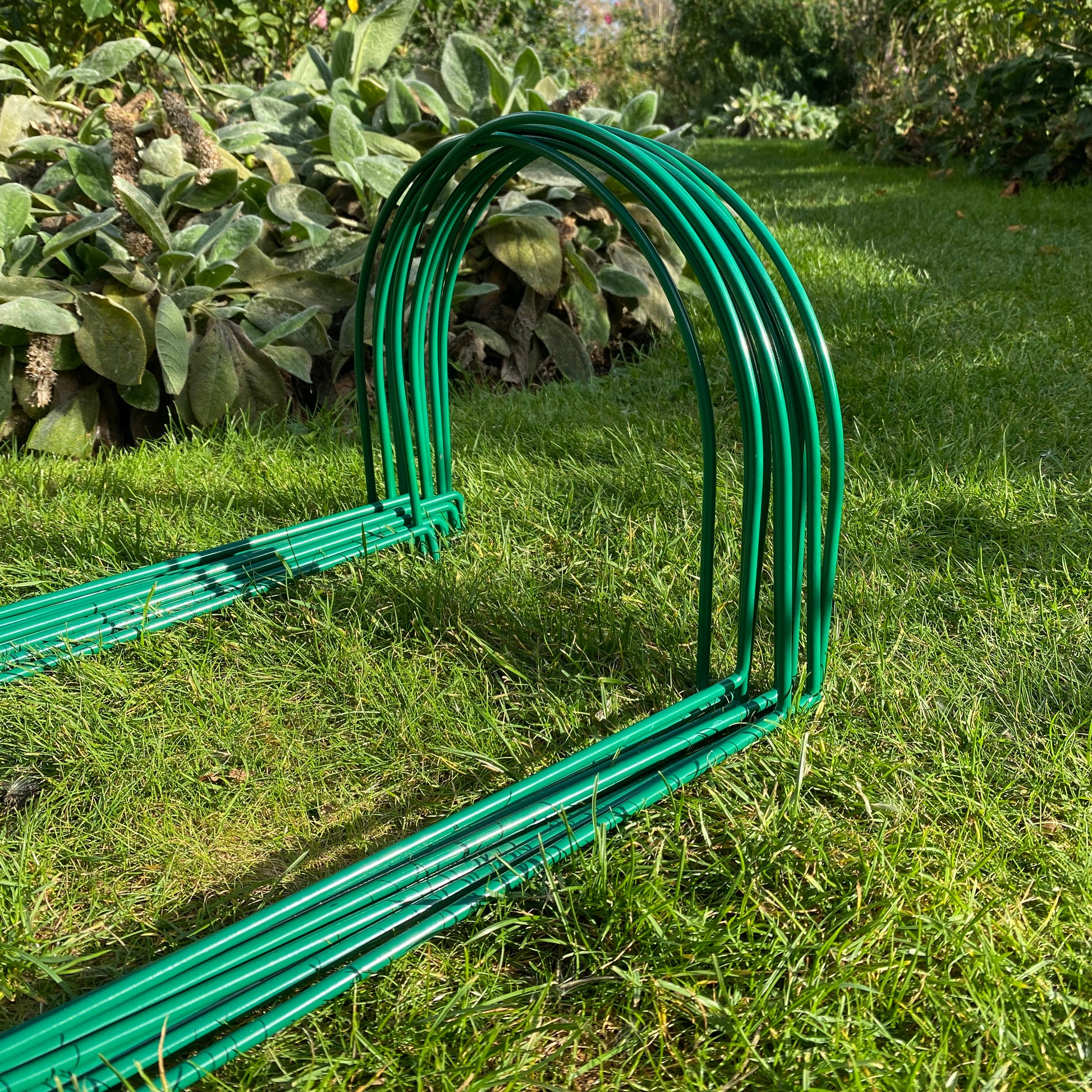 Measuring a generous 5mm thick, the poles have a connecting sections, allowing each hoop to be joined to its neighbour. This enables the variety of supports to be created, providing support for individual plants to large groups.