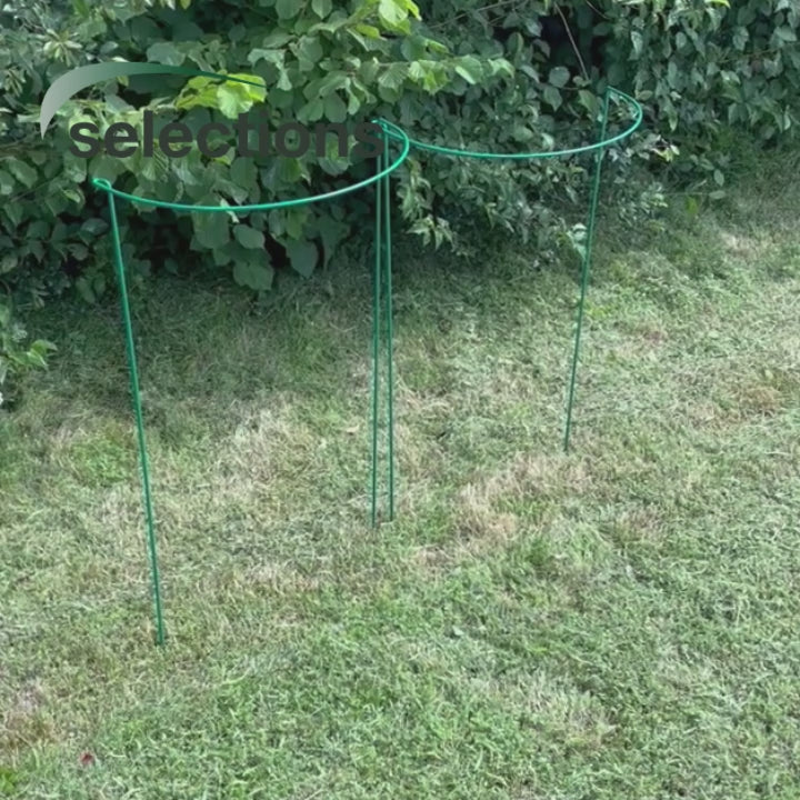 With these hoop supports long-stemmed and pre-established plants can all be supported smoothly and easily when the need arises. The hooped plant stakes can be used singly, in pairs, linked in a chain, or back to back to create a plant frame surrounding the plant with a complete circle.