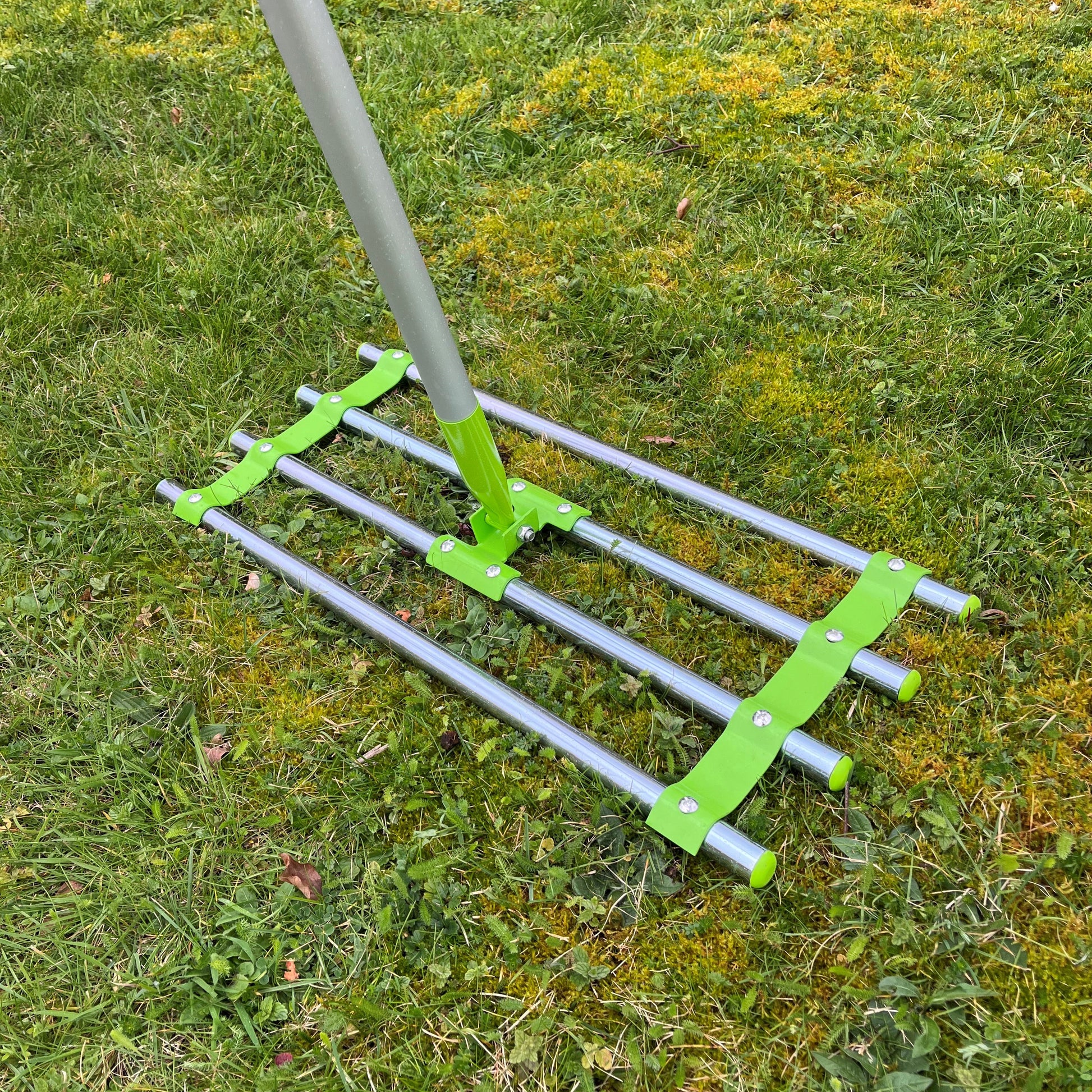 The perfect tool to help prepare your lawn for looking as green and lush as possible, or for levelling out those patches that need repairing. Once you’ve applied your top-dressing material, compost, soil or sand, the four metal bars on the head of the rake can be worked over your lawn ensuring that those uneven patches are made even, level and as uniform as can be. Weighing just under 4kg, the levelling rake is light enough to handle with ease but sturdy enough to distribute your top-dressing material.
