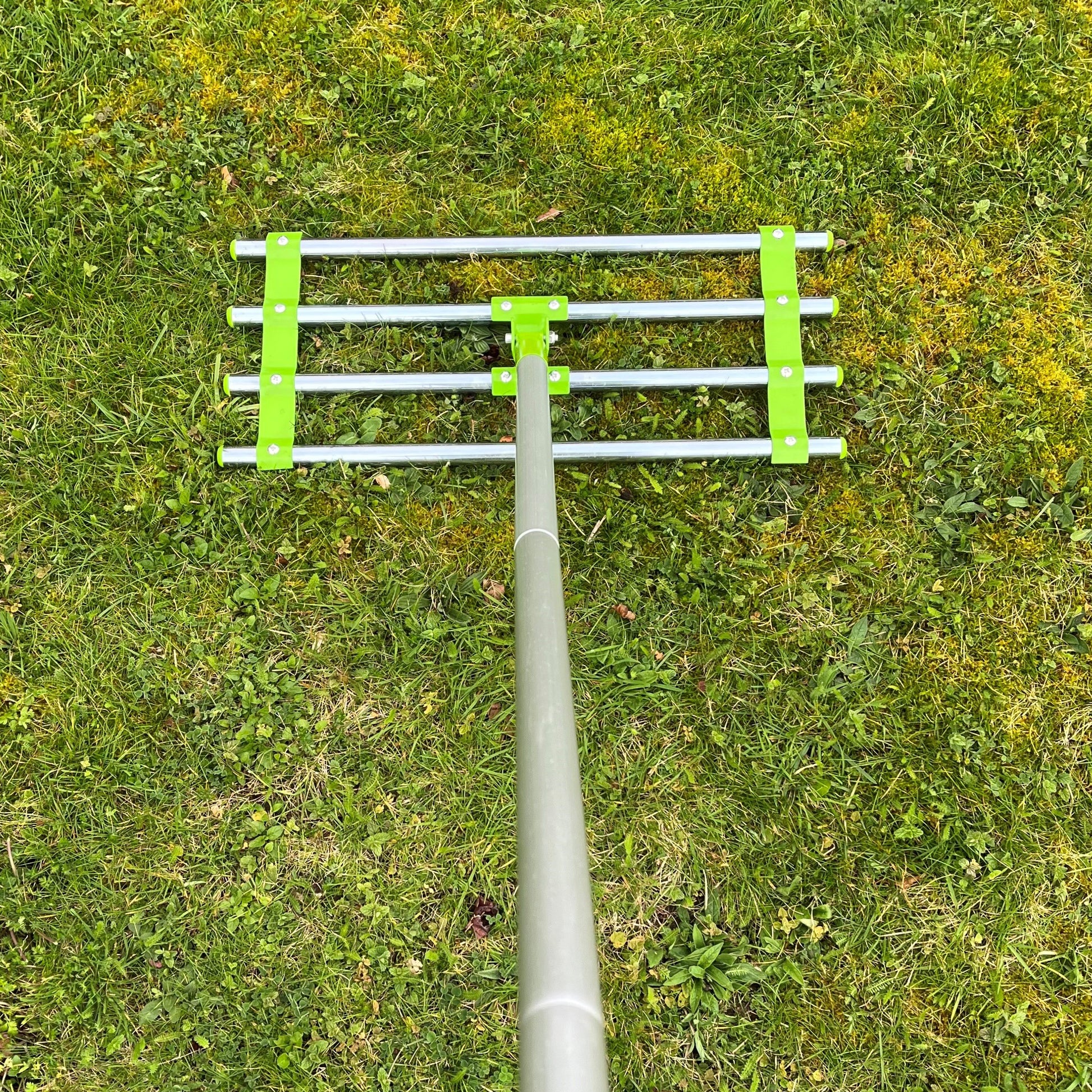 The 61cm head width ensures that large areas of lawn can be covered in a short time, and the 165cm handle length takes back strain out of the task – no more bending over trying to distribute your top-dressing compost over those bumpy sections. The handle comes in three sections that screw together, so can be stored away without taking up too much space when not in use.
