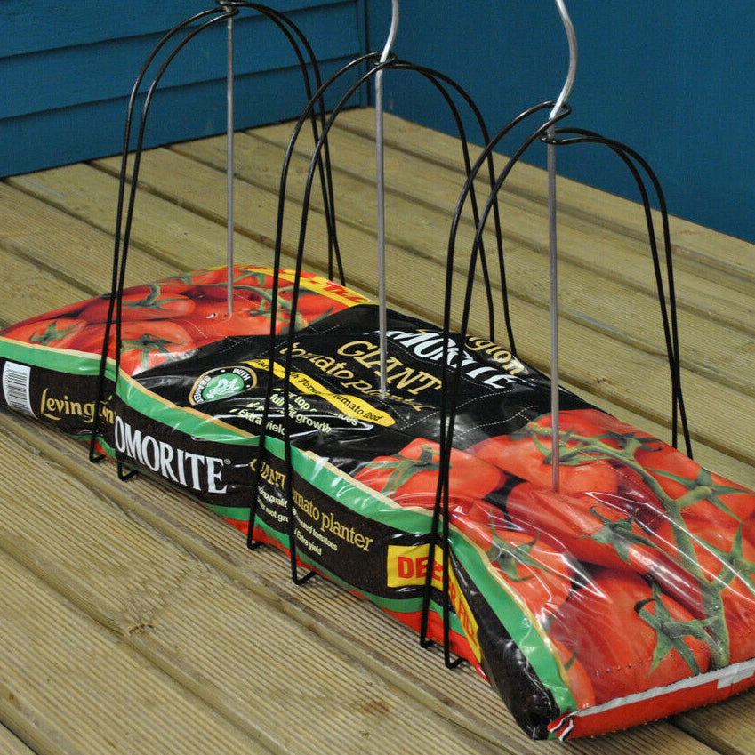 These clever supports wrap around the growbag to create a stable base for the canes to be inserted into. The hooped tops can be pushed together so that when the cane or support stake is placed in between, it is held upright.
