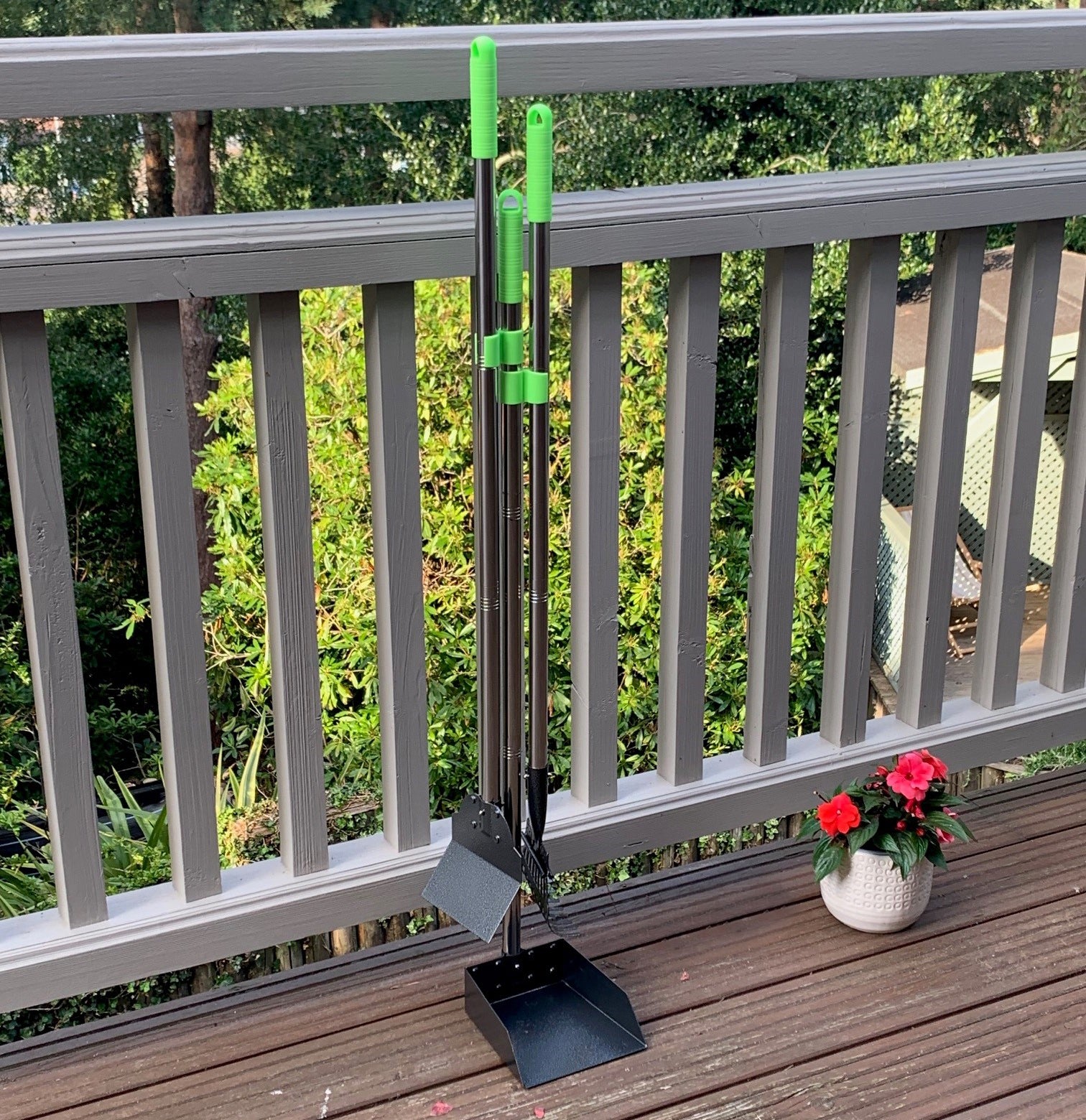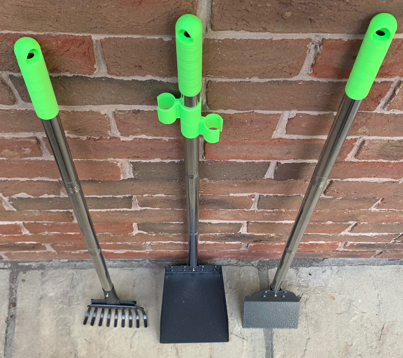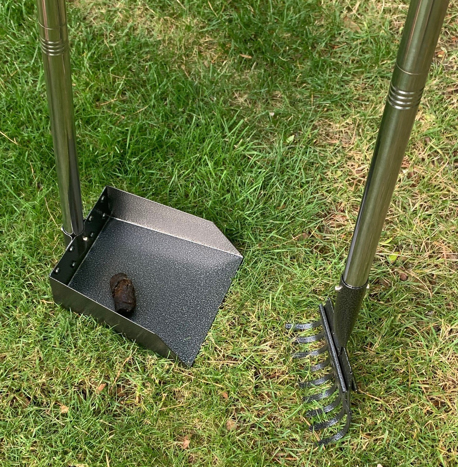 It's very handy to have on hand a means of scooping up dog and cat mess from the lawn. This clever set is specially designed for the purpose; there is a rake for solid and dry offerings, and a spade for everything else.