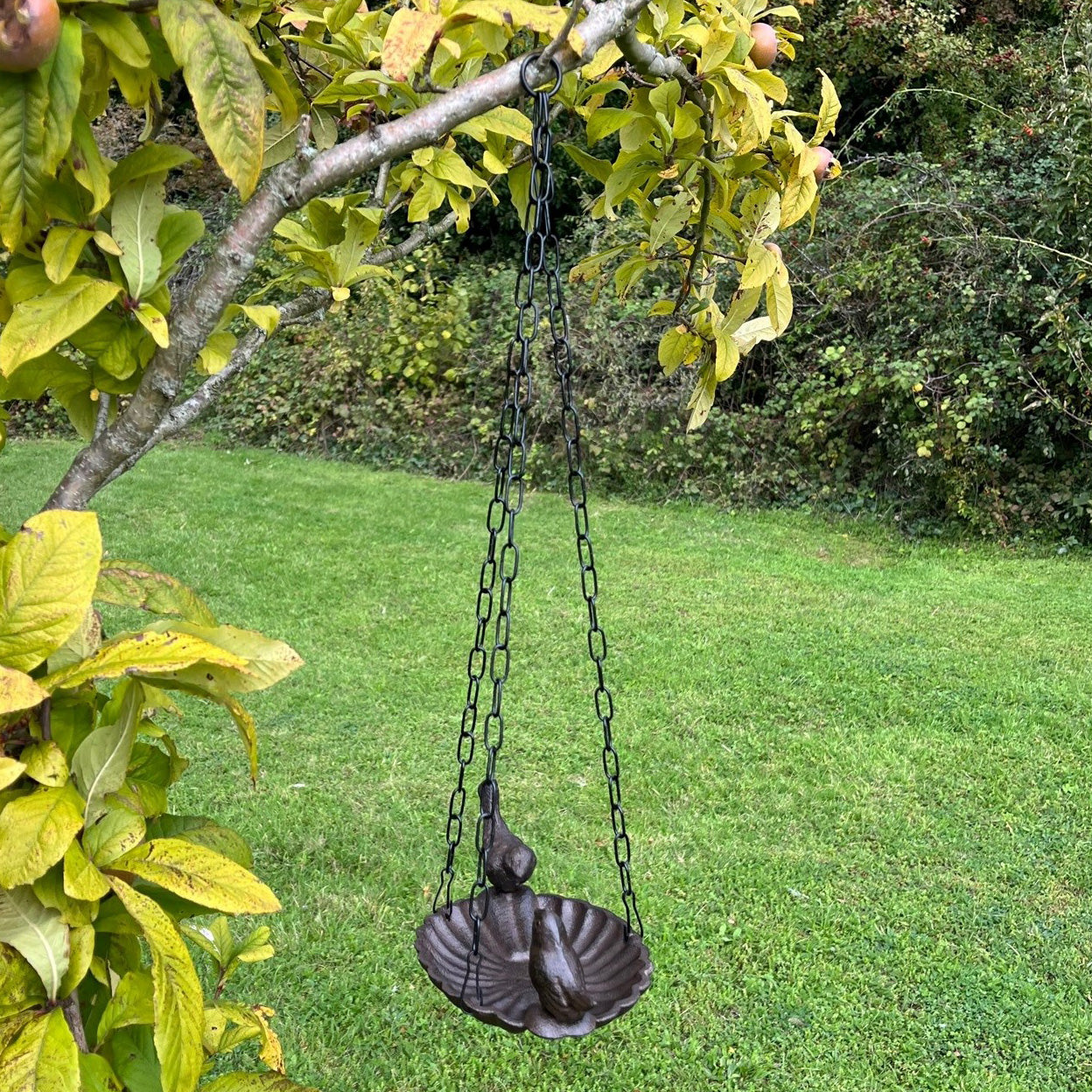 Ornate in design, this hanging wild bird bath is made from cast iron which is not only robust and strong but also in time creates a beautiful aged look. At 50cm including the hanging chain and weighing over 1kg, this bird bath makes for a substantial addition to your garden and a lovely focal point.