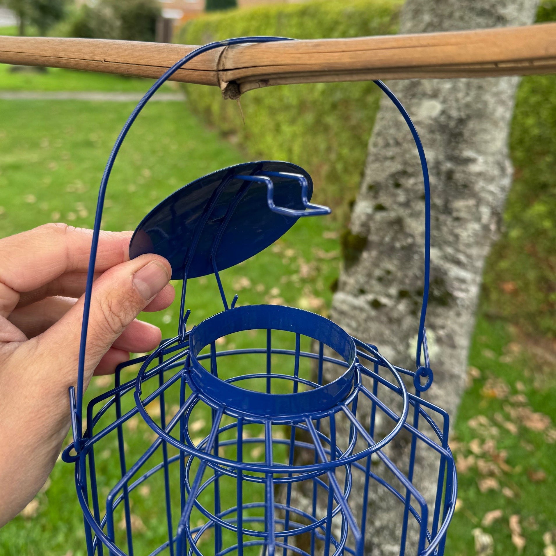 Ideal to go with a feeding station or as individual feeders around the garden. Made from painted steel, this feeder is robust and holds a good quantity of suet fatballs to keep birds fed through cold weather. The feeder features an easy flip-top lid for a simple way of refilling the feeder.