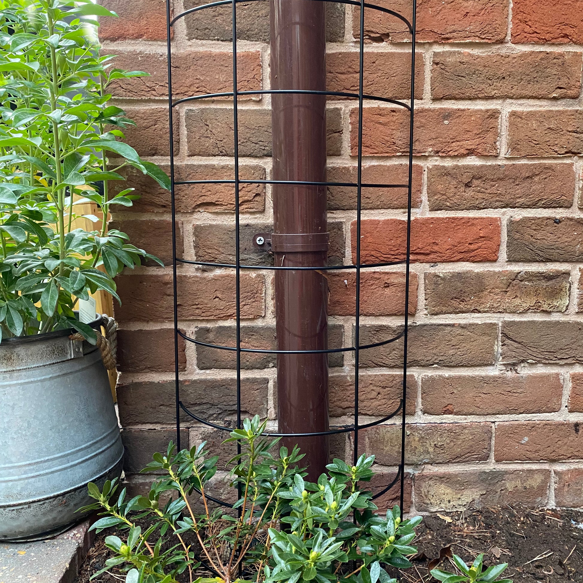 A set of two tube trellis - ingenious devices for hiding intrusive downpipes with attractive climbers. Place a tub or a planter in front of the pipe and train a clematis or honeysuckle up the trellis and the pipe will not be seen.
