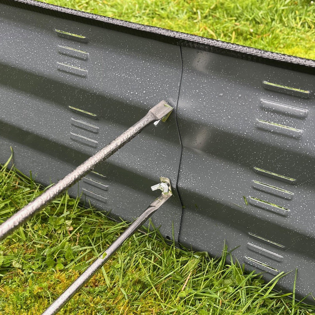 This stunning metal raised bed is stylish and pleasing to look at as well as being hard wearing and practical. The sides measure 25cm high so there's ample depth for creating a fantastic growing bed that is sufficient for most rooted vegetable crops (246 litre capacity). The raised bed frame comes in 10 sections that are simply bolted together, and 4 metal rods attach to create a stable planter.