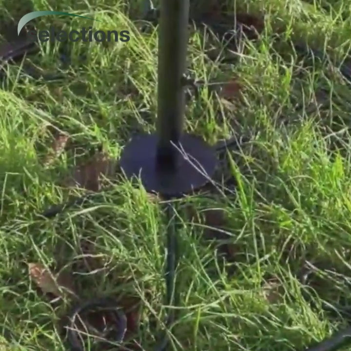Coming with a pole in 4 pieces, when assembled it measures 1.8m high with the stand and is 56cm wide. The poles just slot together and the last piece of the pole has a pointed end so it can be pushed into the soil - however when using the patio stand base you will not be able to use the spike pole.