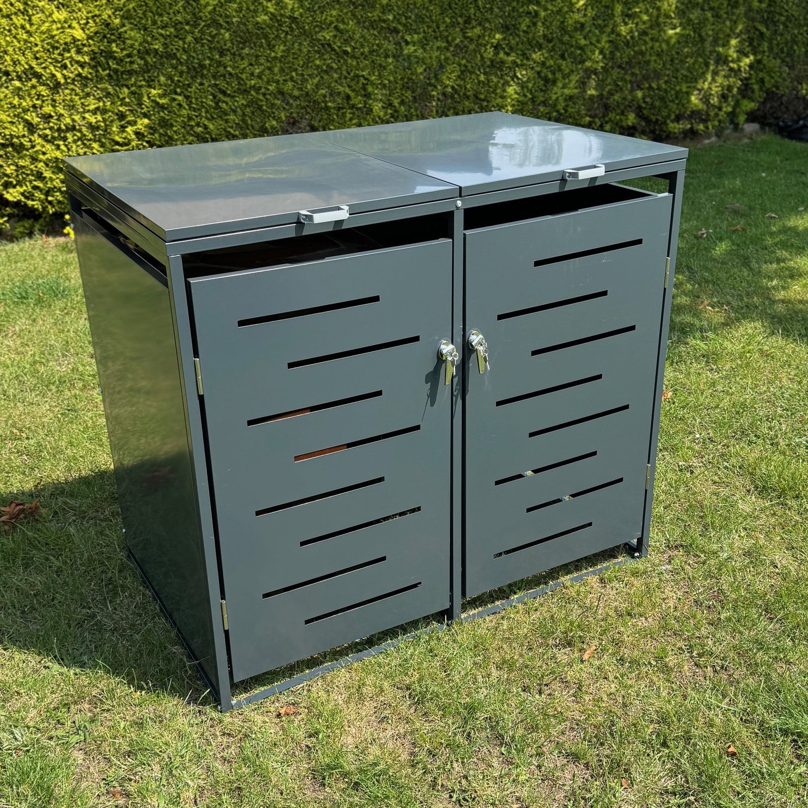 Metal Wheelie Bin Store in Dark Grey (Double)