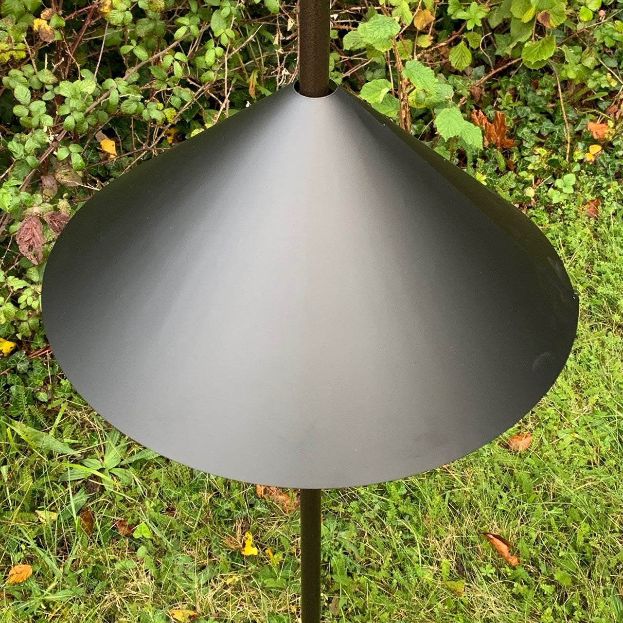 Stopping squirrels climbing up the pole of a bird feeding station can be quite a challenge - but luckily this metal baffle is up to the job. The squirrel climbs up the pole and comes to the baffle that it cannot get around, stopping it in its tracks