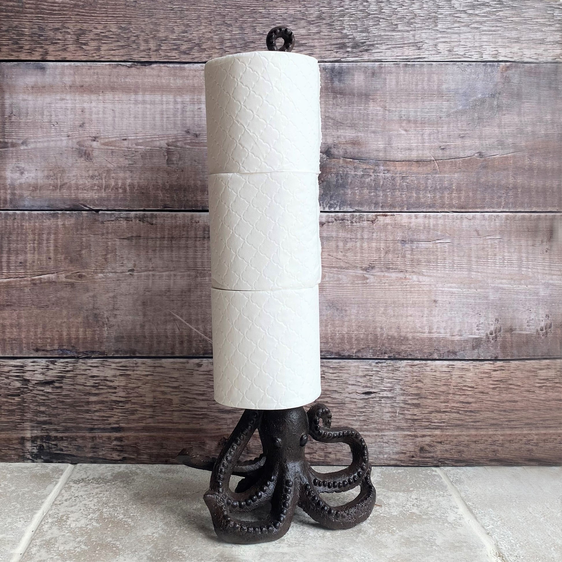 Cast Iron Octopus Shaped Loo Roll Toilet Paper Holder Store (Set of 2)