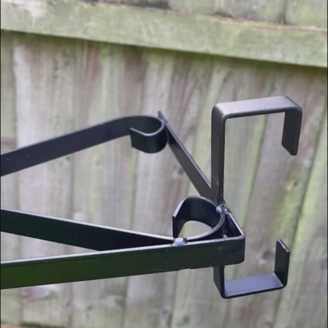 Designed to slot over the top of a concrete fence post, these decorative hanging basket hooks enable you to hang baskets along a fence line. Great to break up long stretches of fencing panels with some colour.