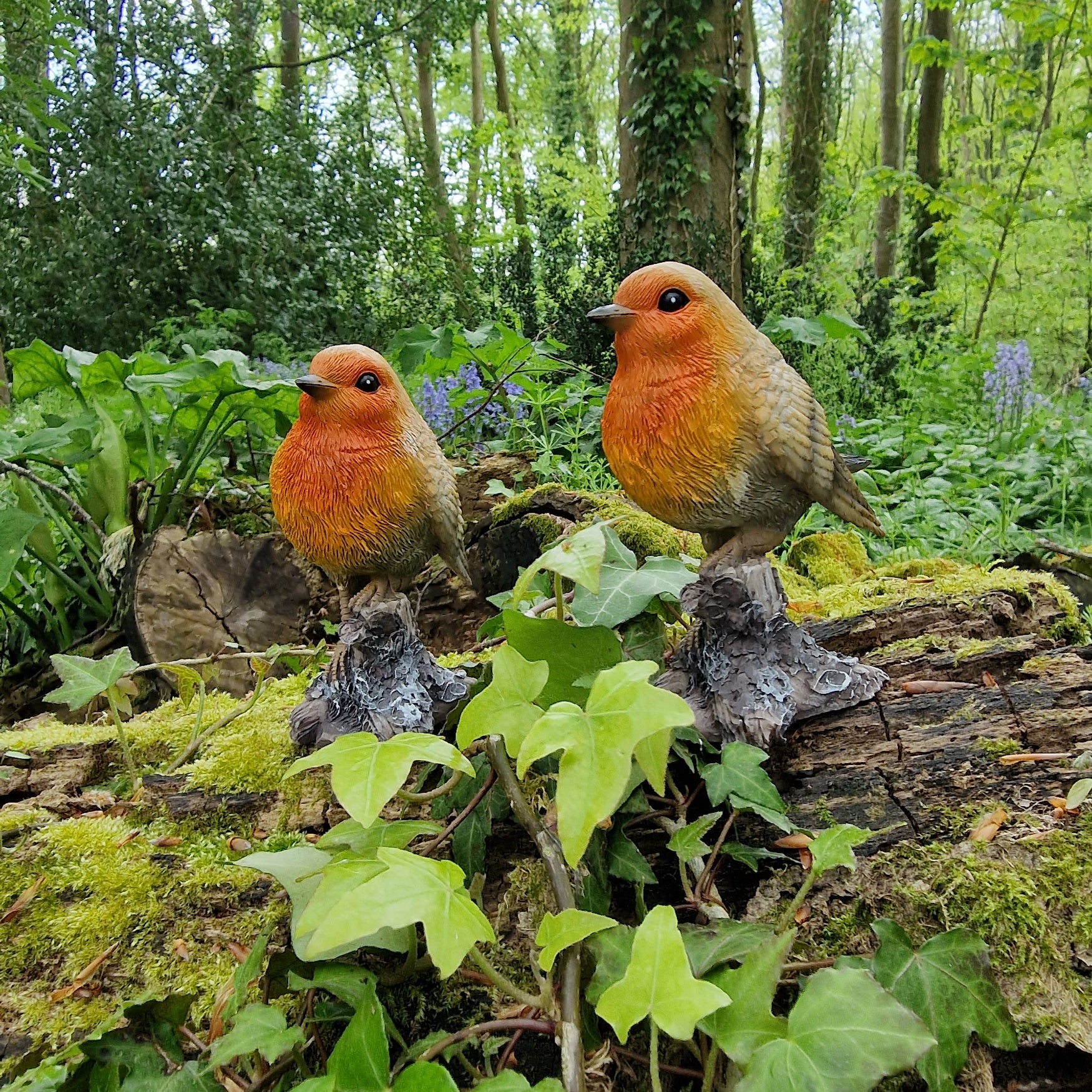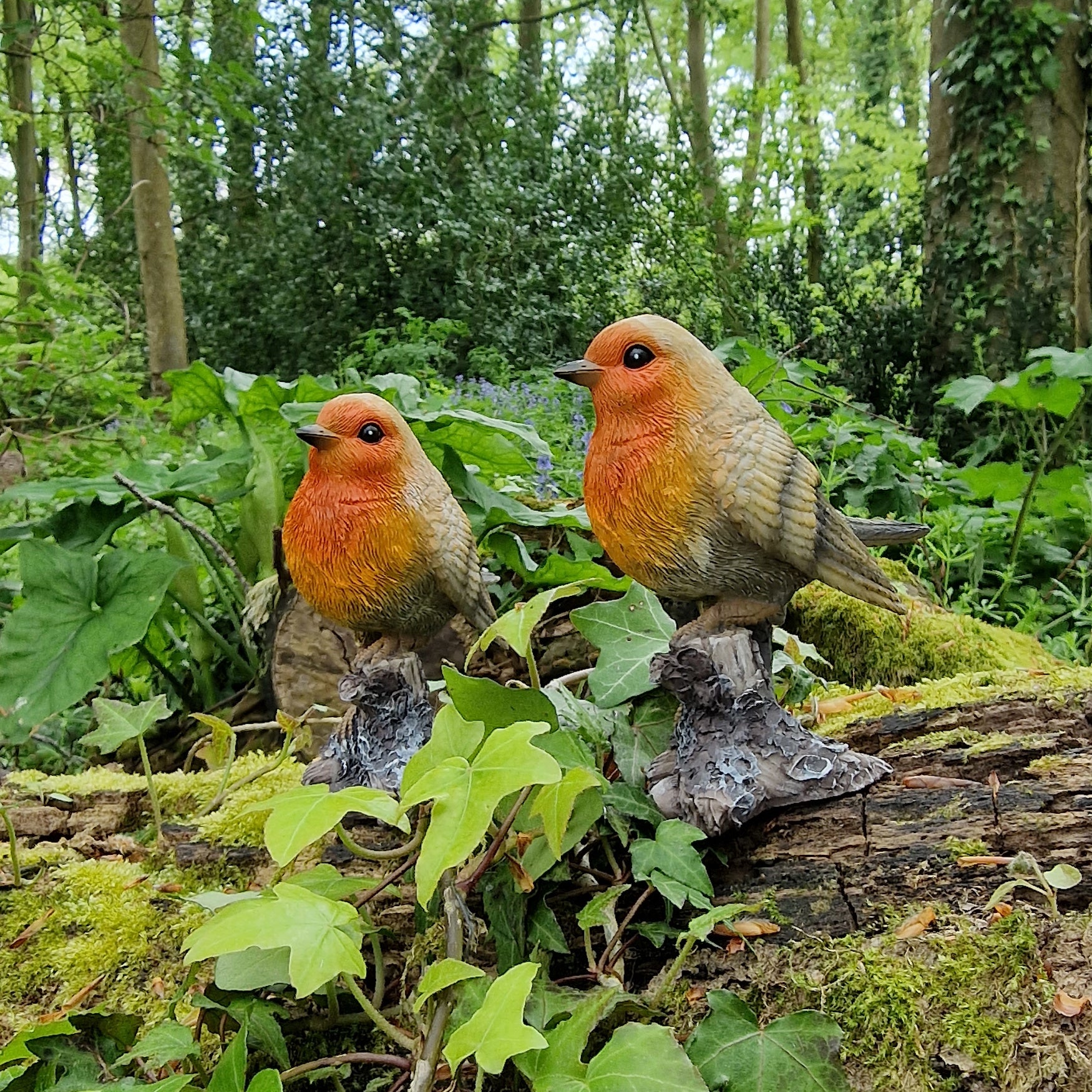 Measuring 11cm high by 10cm long and 6cm wide, each robin is perched defiantly on a tree stump and the pair make a charming feature for any garden.