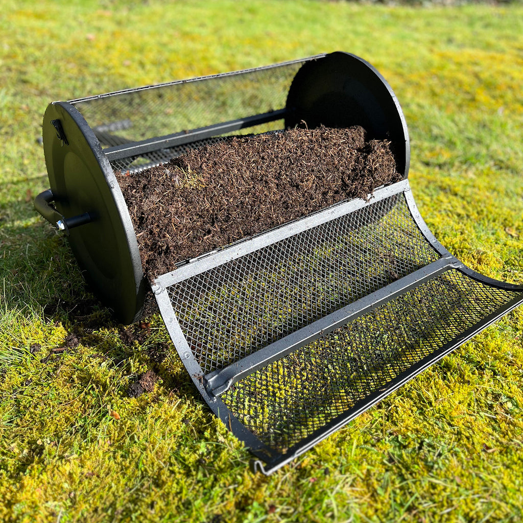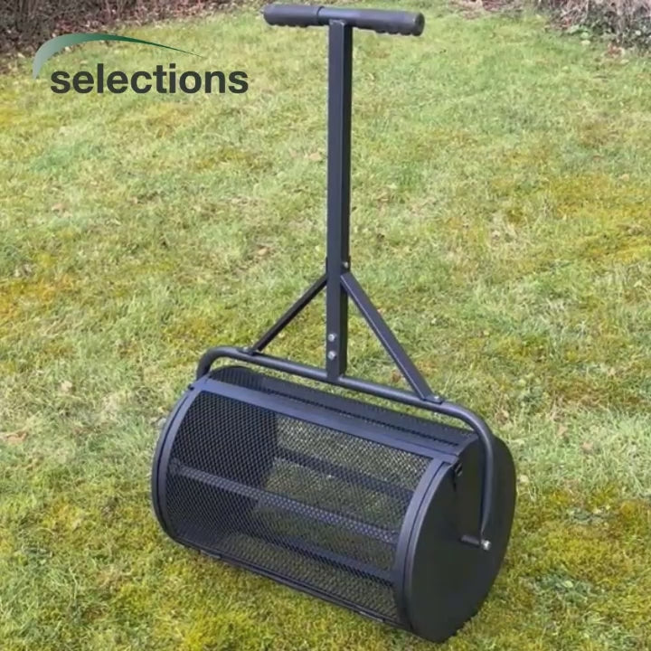 Our sturdy metal rolling compost spreader takes the strain out of lawn dressing; easy and efficient to use, simply open and fill the drum with the material of your choice, lock the latches, then roll over your lawn. The compost is distributed evenly, meaning no more shovelling and raking.