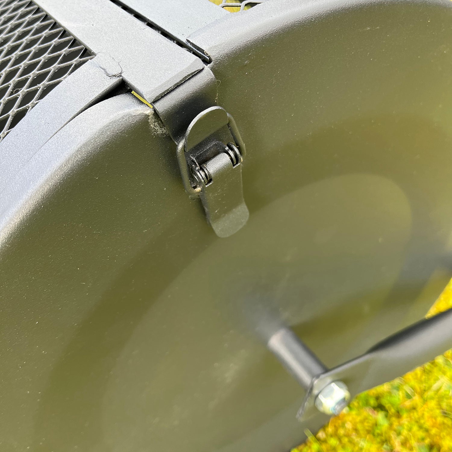 With a capacity of roughly 70 litres, the 61cm / 24-inch mesh drum gives excellent coverage and is simple to refill when depleted. The handle measures 30cm across and the roller measures 110cm tall when fully constructed. The mesh measure 1cm x 1cm.