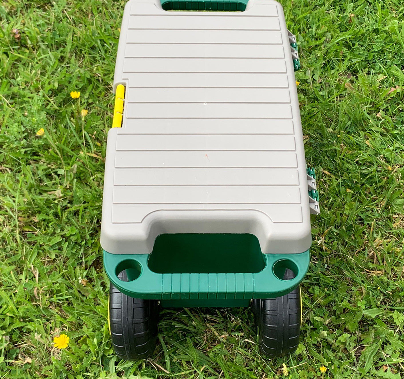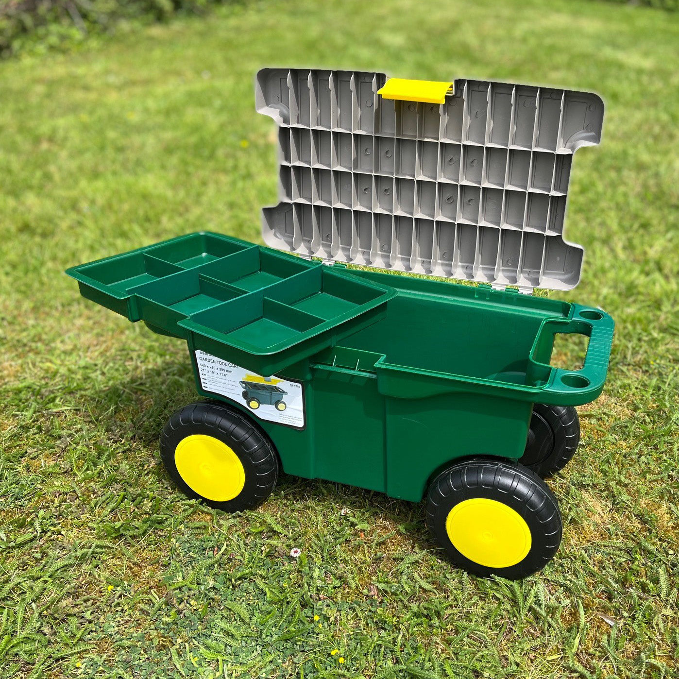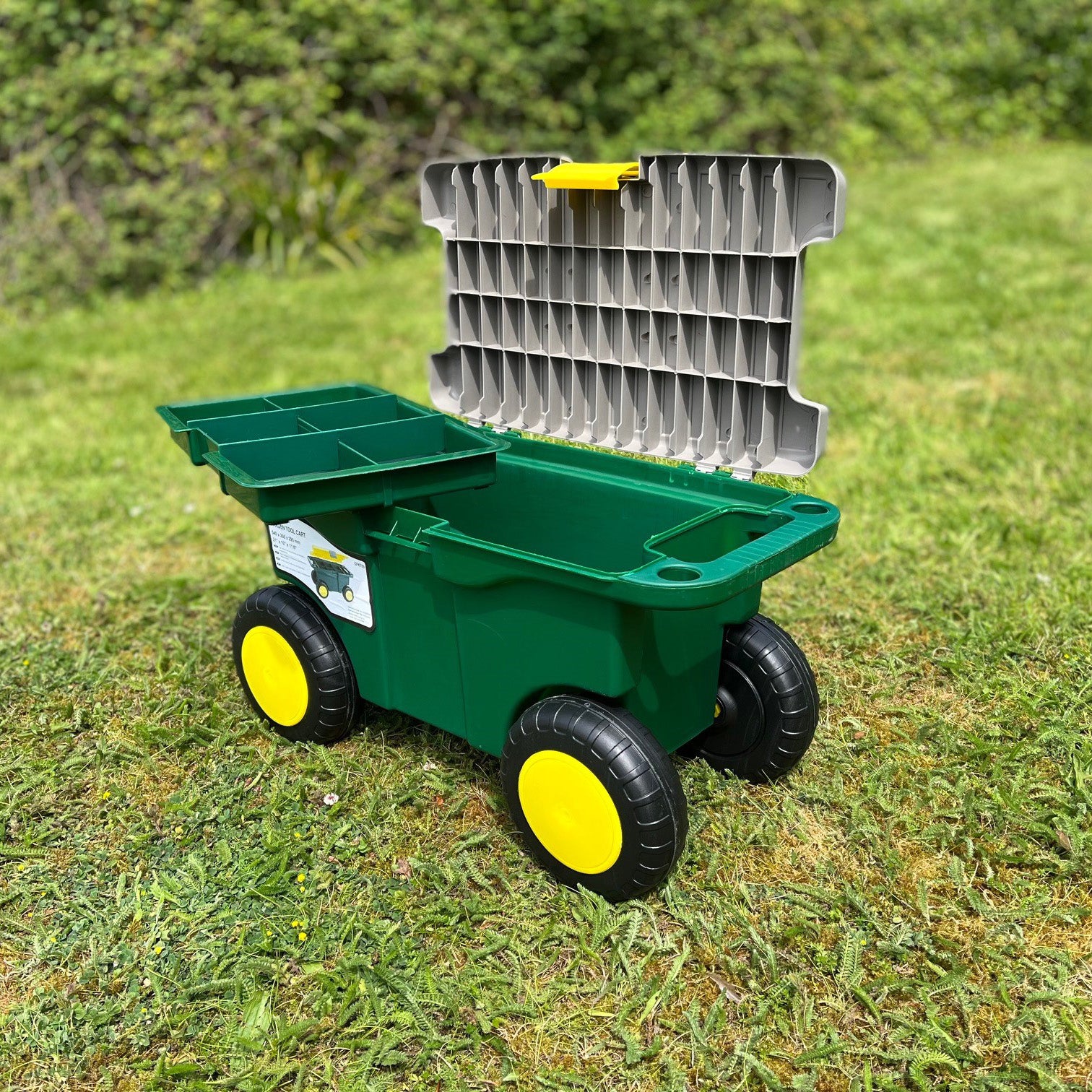 This handy little tool cart is a fun and practical storage unit for your gardening hand tools, and also a moving seat for you to sit on when tending those borders.