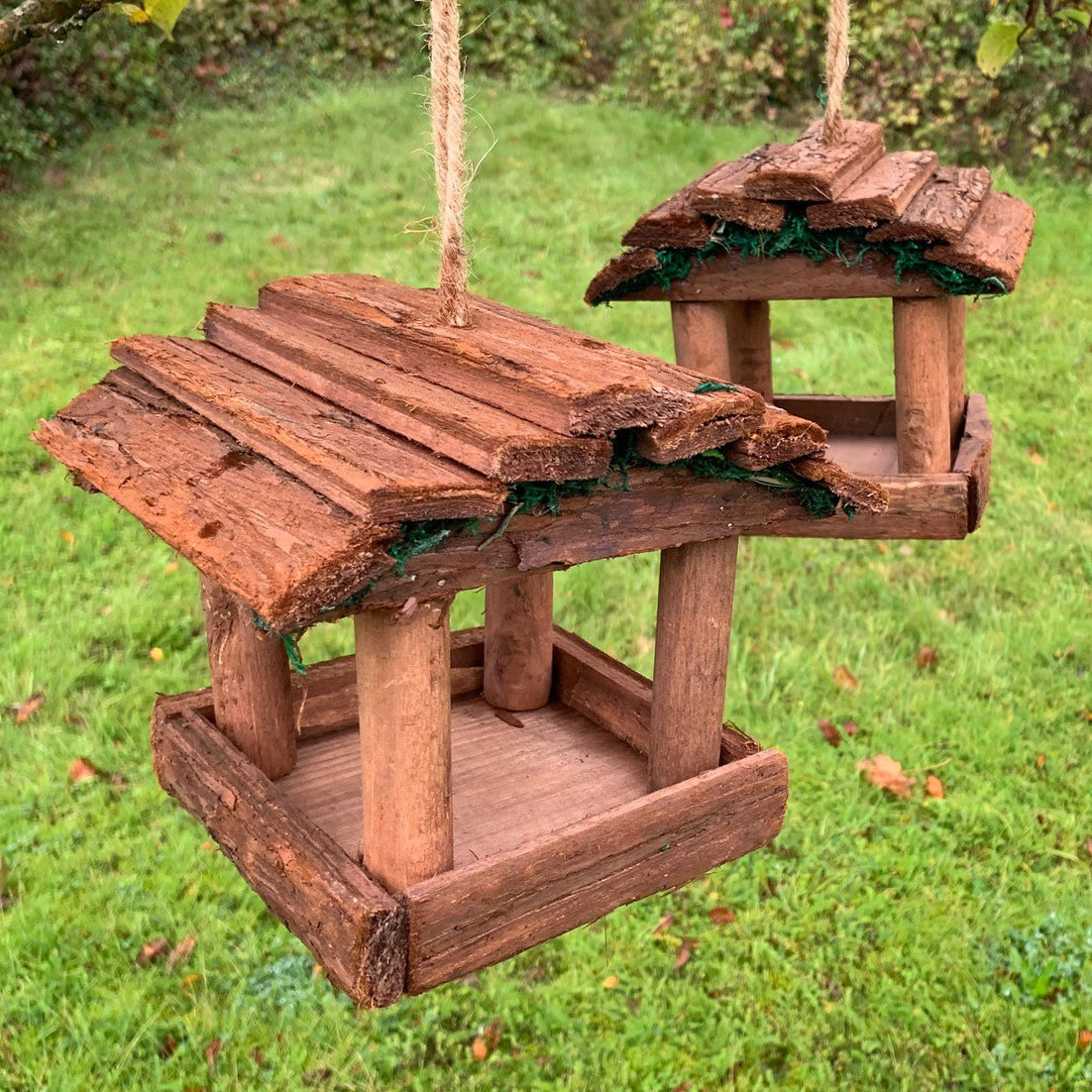 Hanging Wooden Bird Table Feeders (Set of 2)