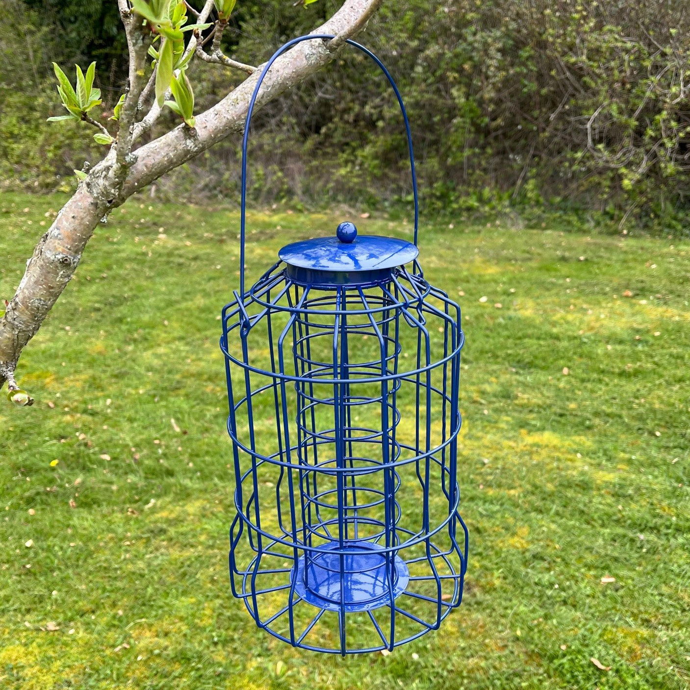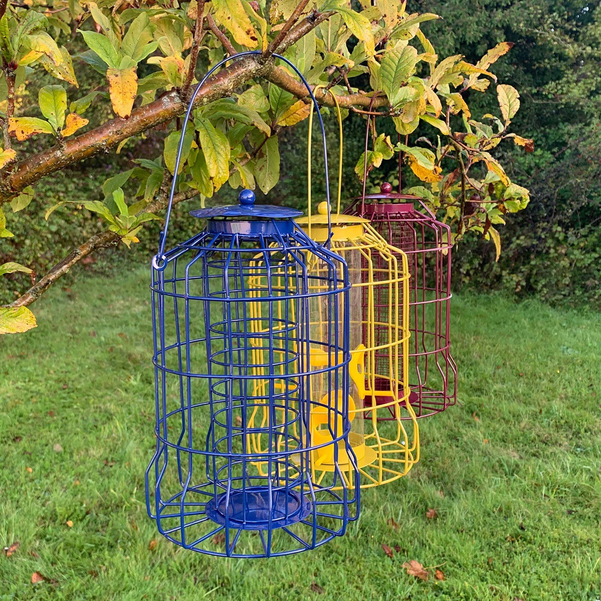 Set of 3 large, attractive metal squirrel proof bird feeders designed to keep unwanted visitors out, but let the garden birds in. Each feeder is surrounded by an anti-squirrel cage to protect the feed from unwanted garden pests.