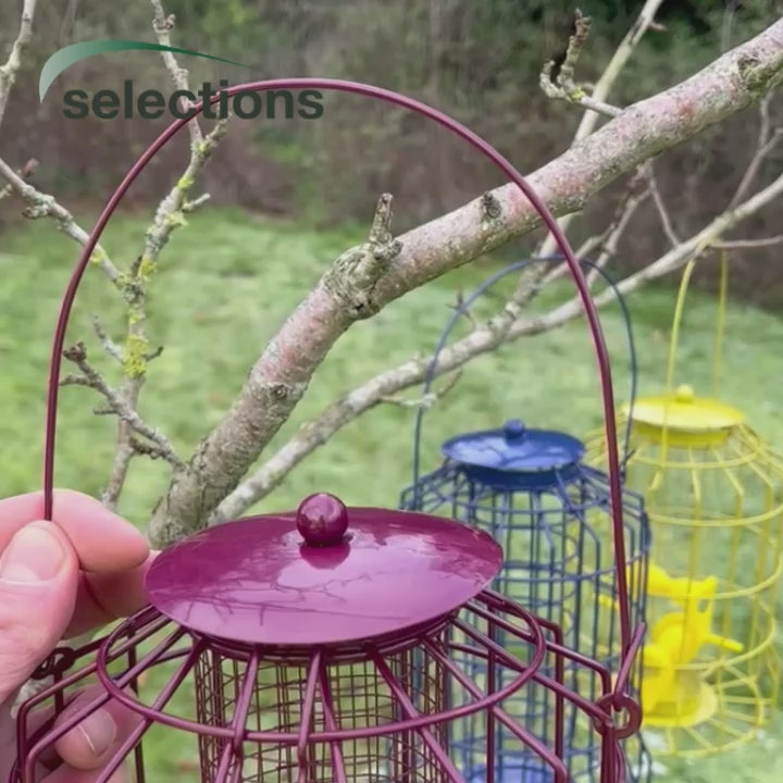 An ideal set to go with a feeding station or as individual feeders around the garden, they are made from powder coated steel. Strong and robust, they hold a good quantity of food to keep birds fed through cold weather and feature an easy flip-top lid for re-filling the feeders.