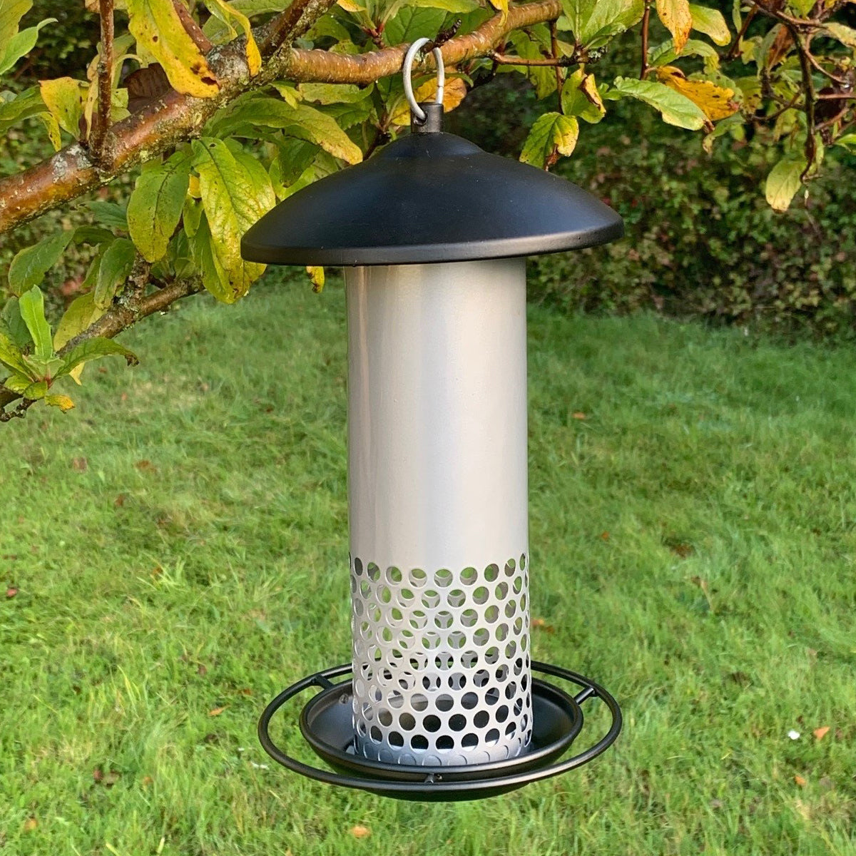 This high quality mealworm feeder is a great addition to your bird-feeding set up. Whilst it won't stop cheeky squirrels from trying their best to steal the contents, the metal tube is designed to at least make it a great deal harder for them. The metal feed tube is approximately 22cm tall and 8cm across, giving a fillable volume of roughly 1.1 litres.