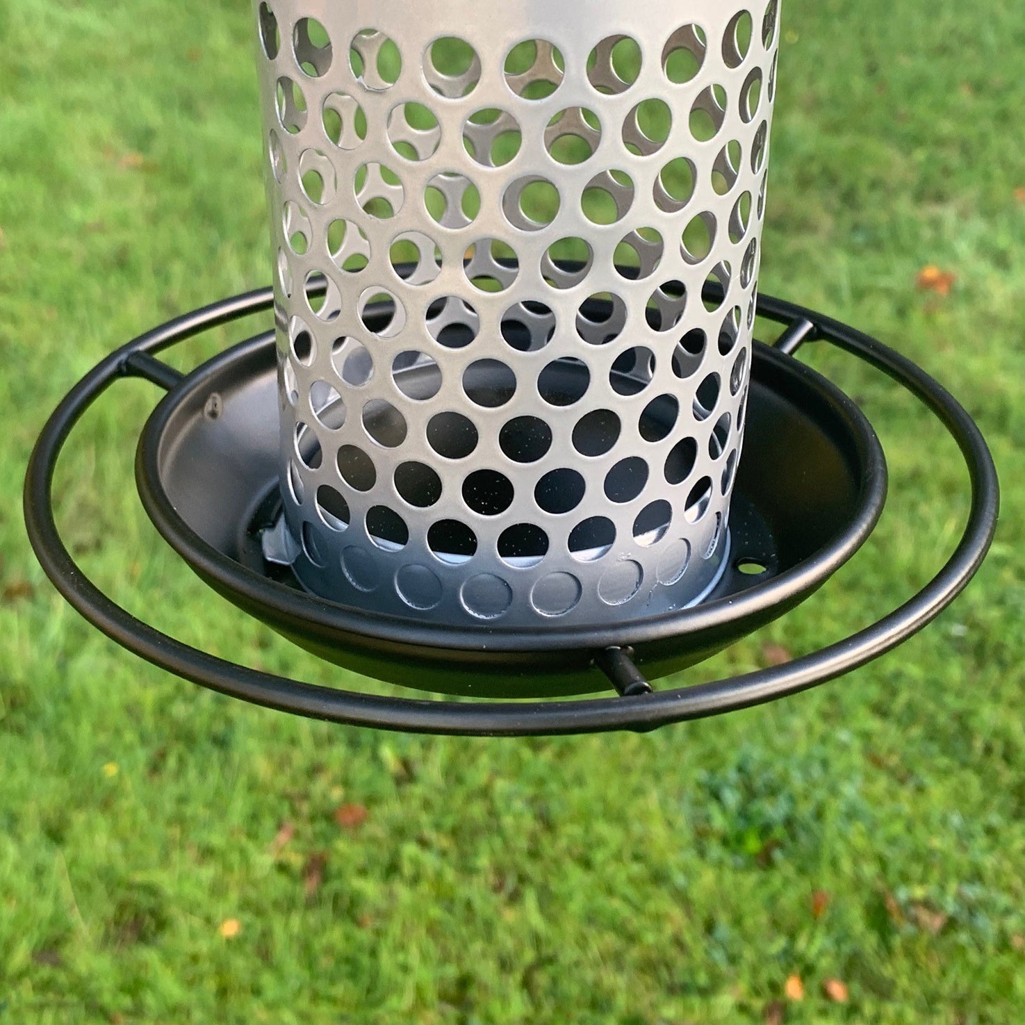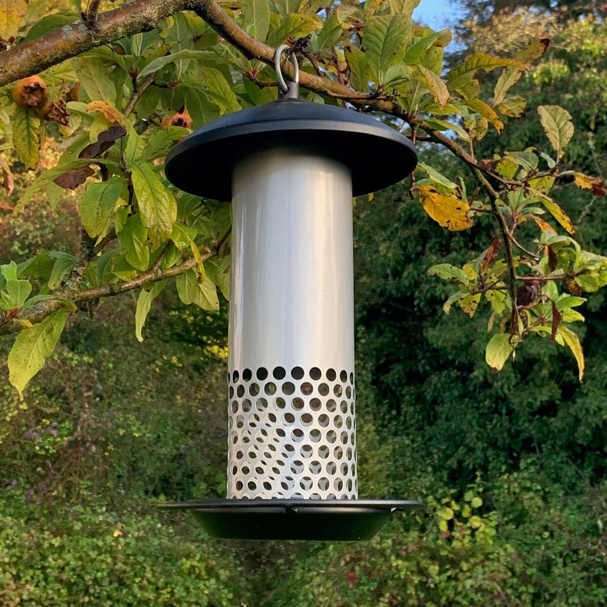 This high quality mealworm feeder is a great addition to your bird-feeding set up. Whilst it won't stop cheeky squirrels from trying their best to steal the contents, the metal tube is designed to at least make it a great deal harder for them. The metal feed tube is approximately 22cm tall and 8cm across, giving a fillable volume of roughly 1.1 litres.