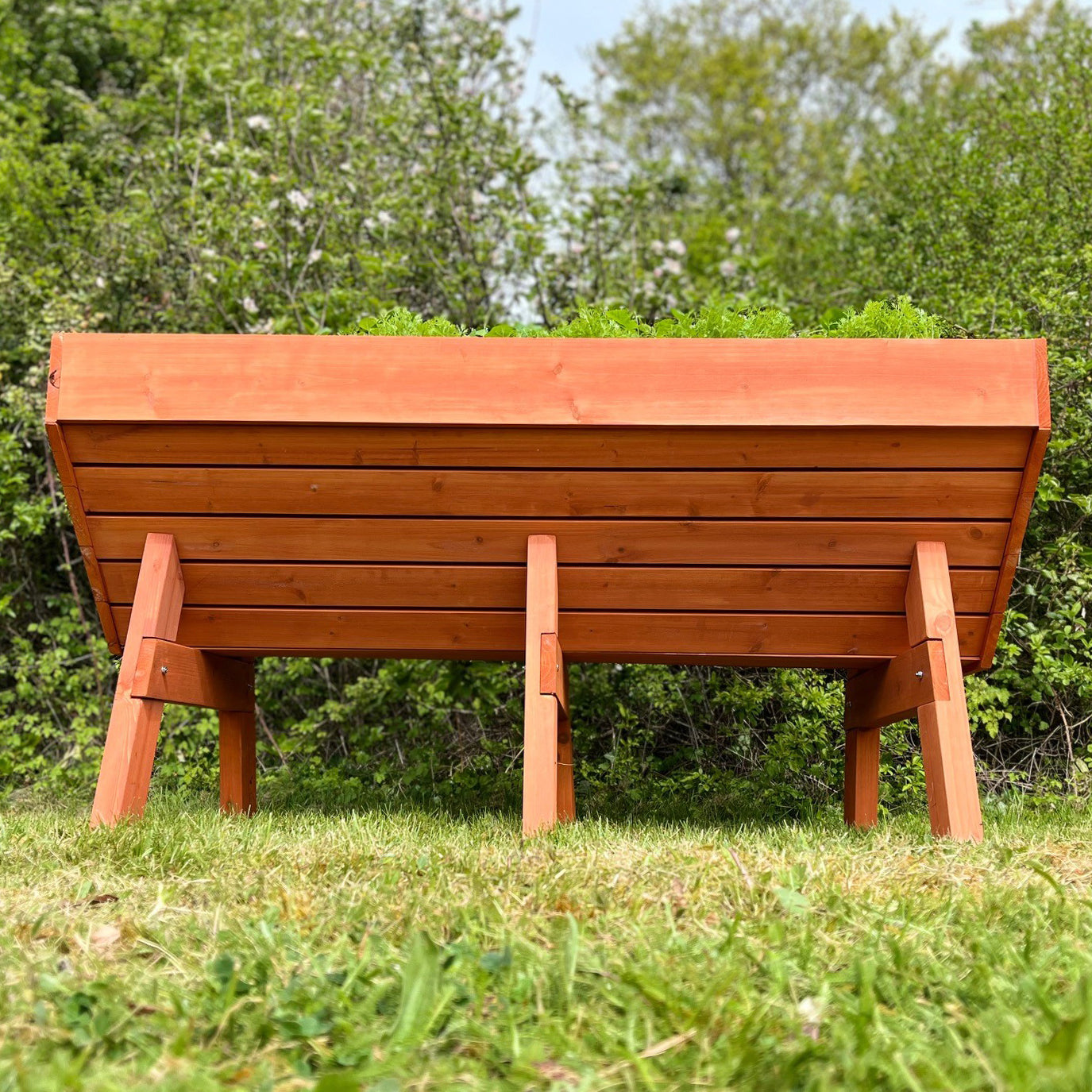 Now you can grow your vegetables the easy way, with the Veg-Trough planter. Made from treated timber, this unique raised bed provides the ideal base for your vegetable garden. Specially designed to provide a comfortable working height, the Veg Trough is ideal for creating a vegetable plot that is easily managed without bending over (great for those with bad backs) while keeping the crops safe from pests. What's more, crops can be increased as the Veg Trough can be filled with compost to create the perfect growing environment - so you can be sure of a bumper harvest whatever the local soil conditions.