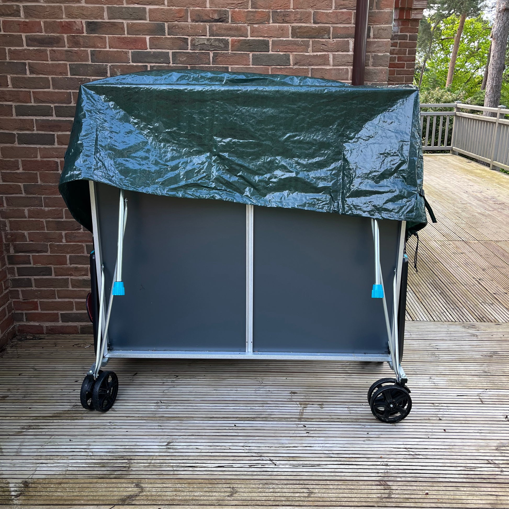 The cover measures 165cm wide by 185cm tall. The depth at the base is 70cm and it tapers to 30cm at its peak. Whilst our waterproof cover won’t help you improve your ping pong game, it’ll certainly help protect your playing surface.