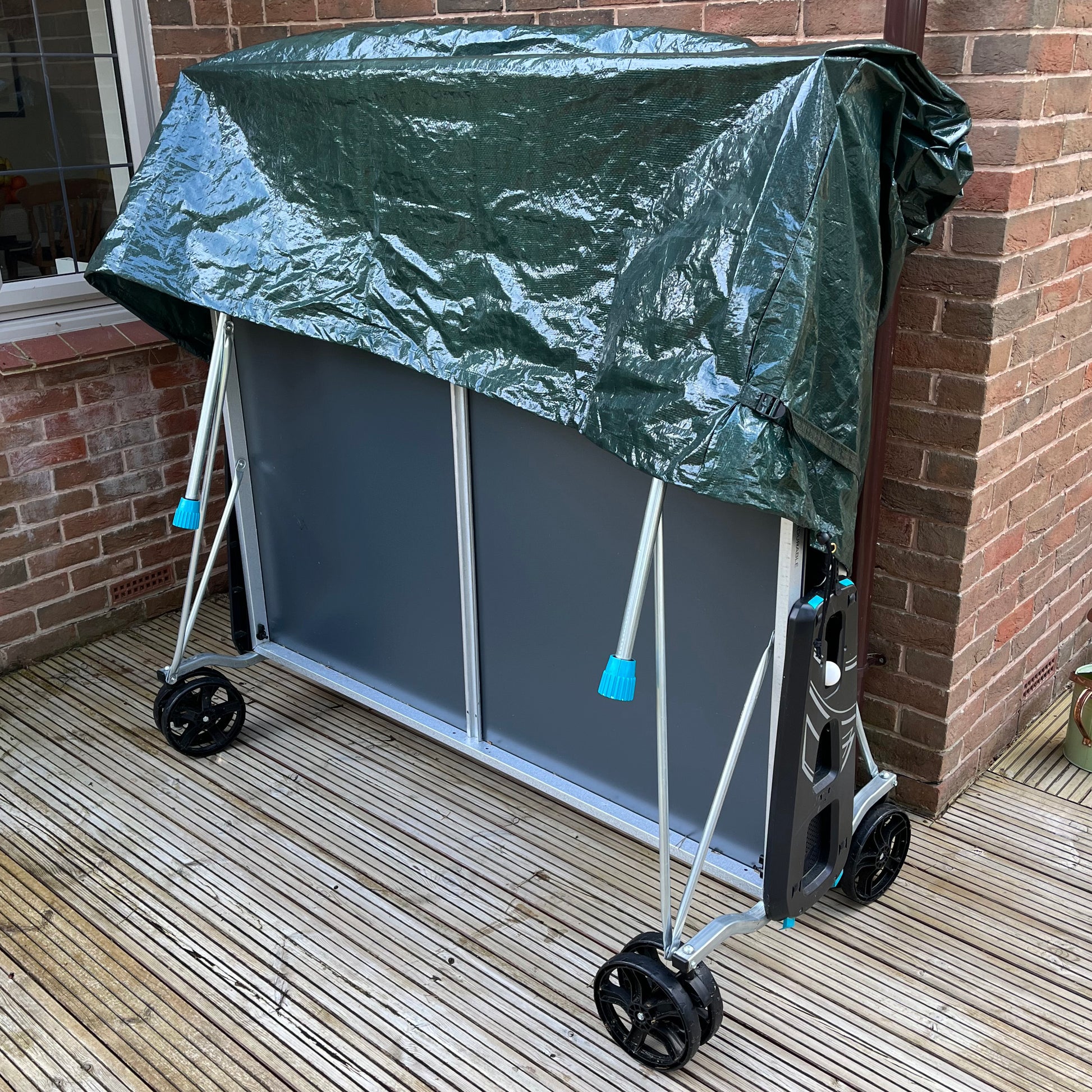 Protect your table tennis table from dust, dirt, and the elements with our waterproof cover. Made from 100gsm polyethylene, the cover is easily washable and folds away when not in use. Sturdy stitched seams add strength to the cover, and it can be fixed in place by way of a nylon drawstring, and a strap with buckle for twice the peace of mind.