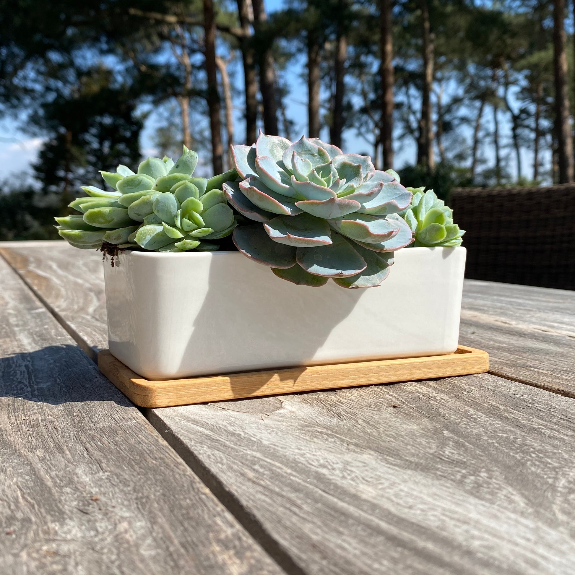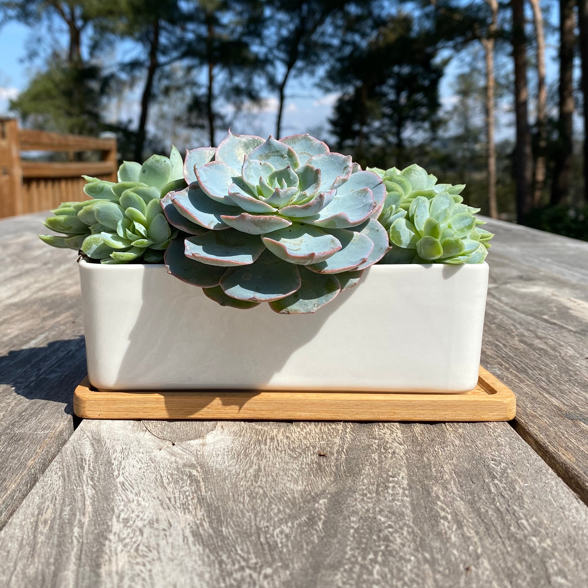White Succulent and Cactus Ceramic Trough Plant Pot