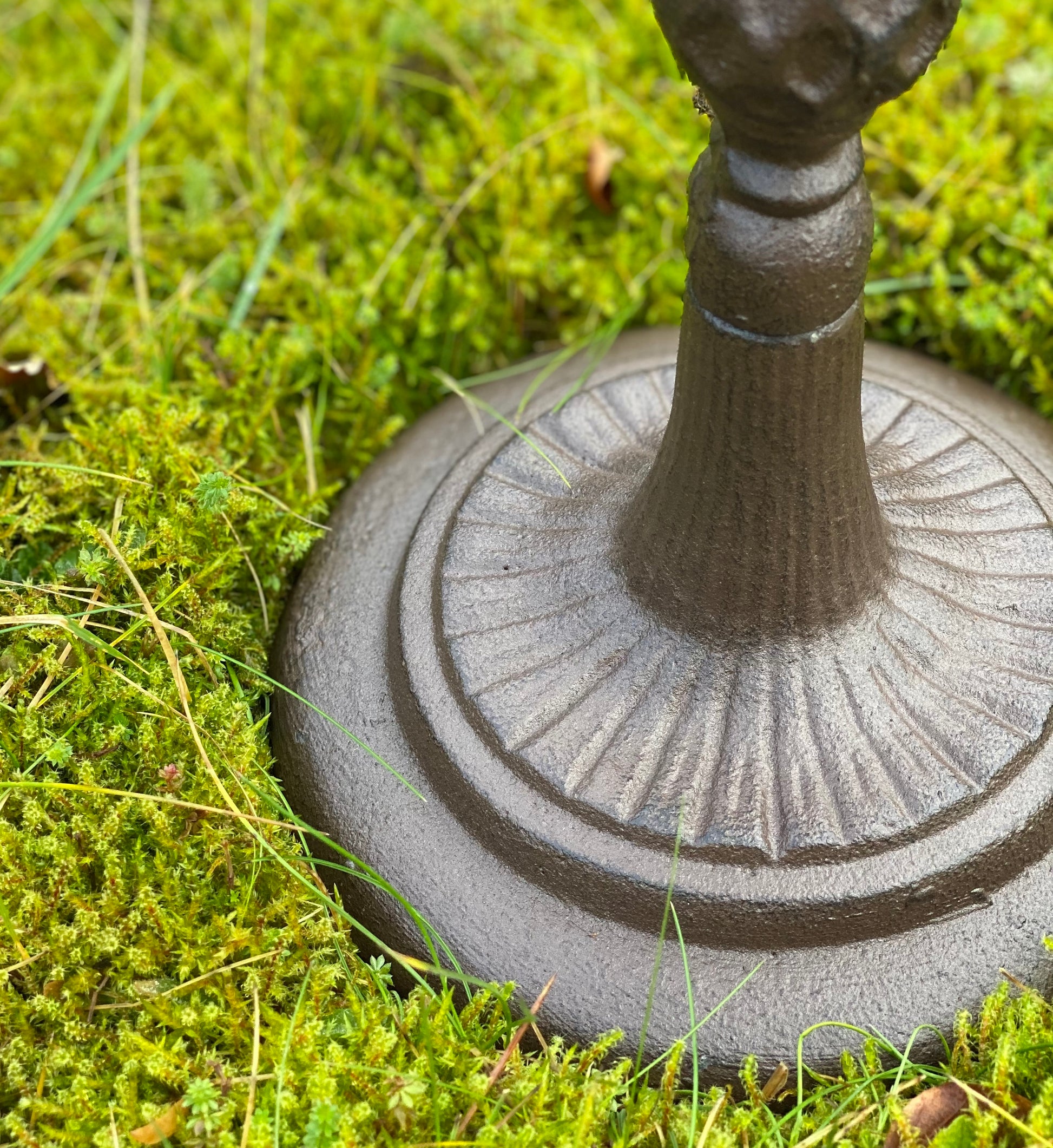 Ornate in design, this decorative wild bird bath is made from cast iron which is not only robust and strong but also in time creates a beautiful aged look. Standing 54cm tall and weighing over 6kg, the bird bath makes not only a practical addition to your garden but also a lovely focal point.