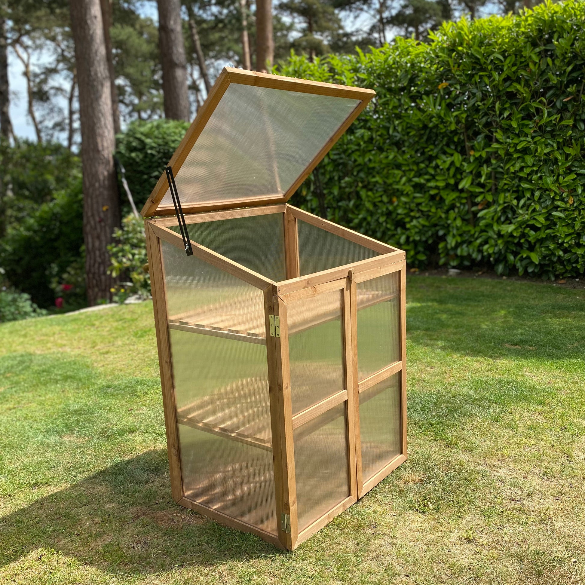 A mini greenhouse is a must for protecting young plants during the colder months. This generously sized wooden framed growhouse also provides a place for plants to be hardened off in spring prior to planting out, and to be protected from frosts in the evening and morning in the autumn.