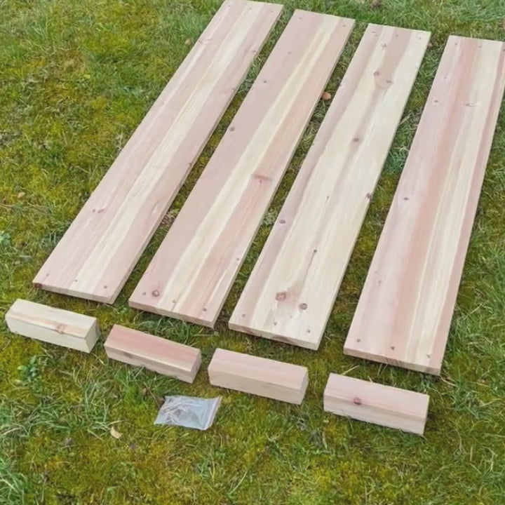 Our raised bed is made from natural Fir wood so is strong as well as reasonably light in weight. Measuring a generous 122cm by 18cm deep, it is easily screwed together (fixings are included) and solid once constructed. The wood has been treated with a clear preservative.