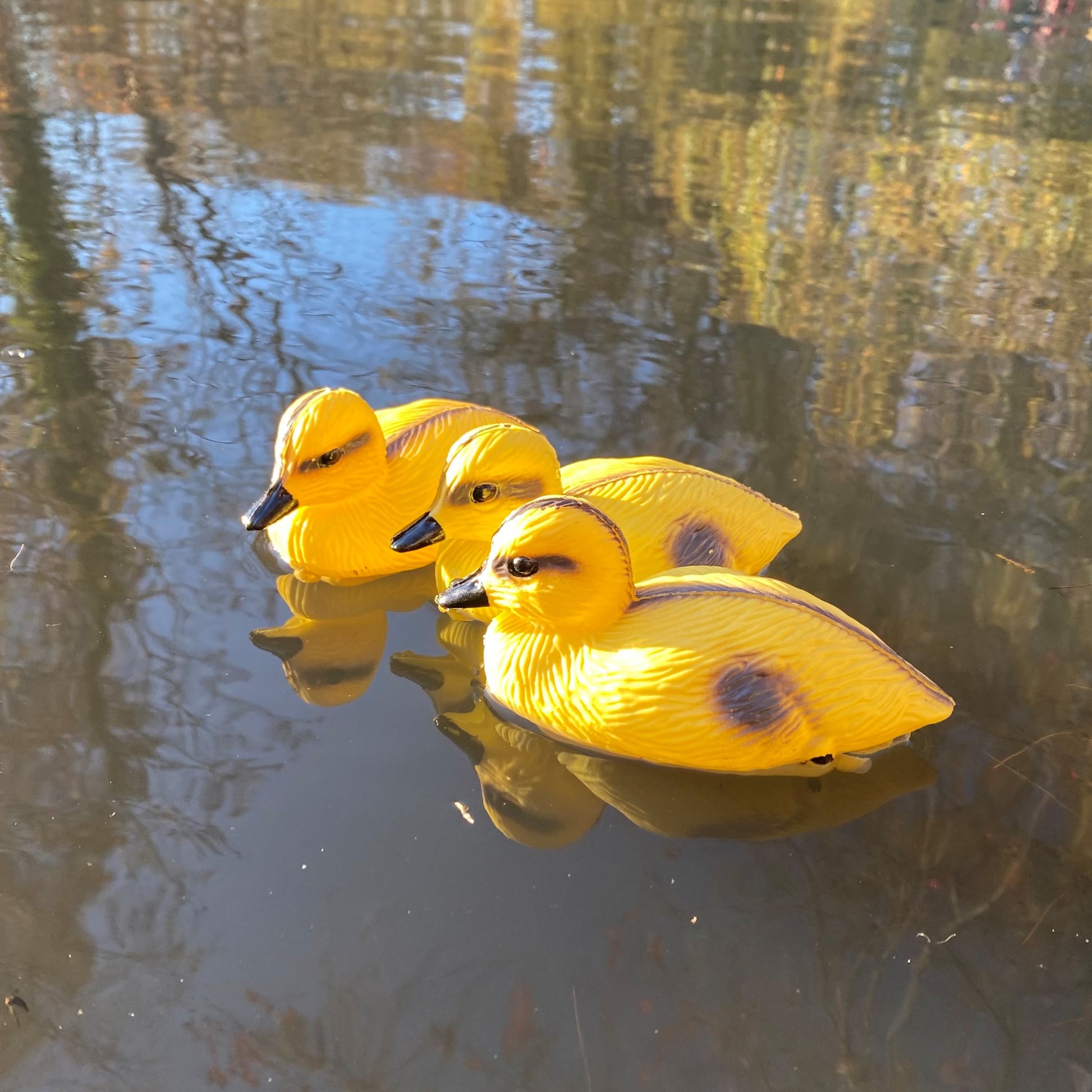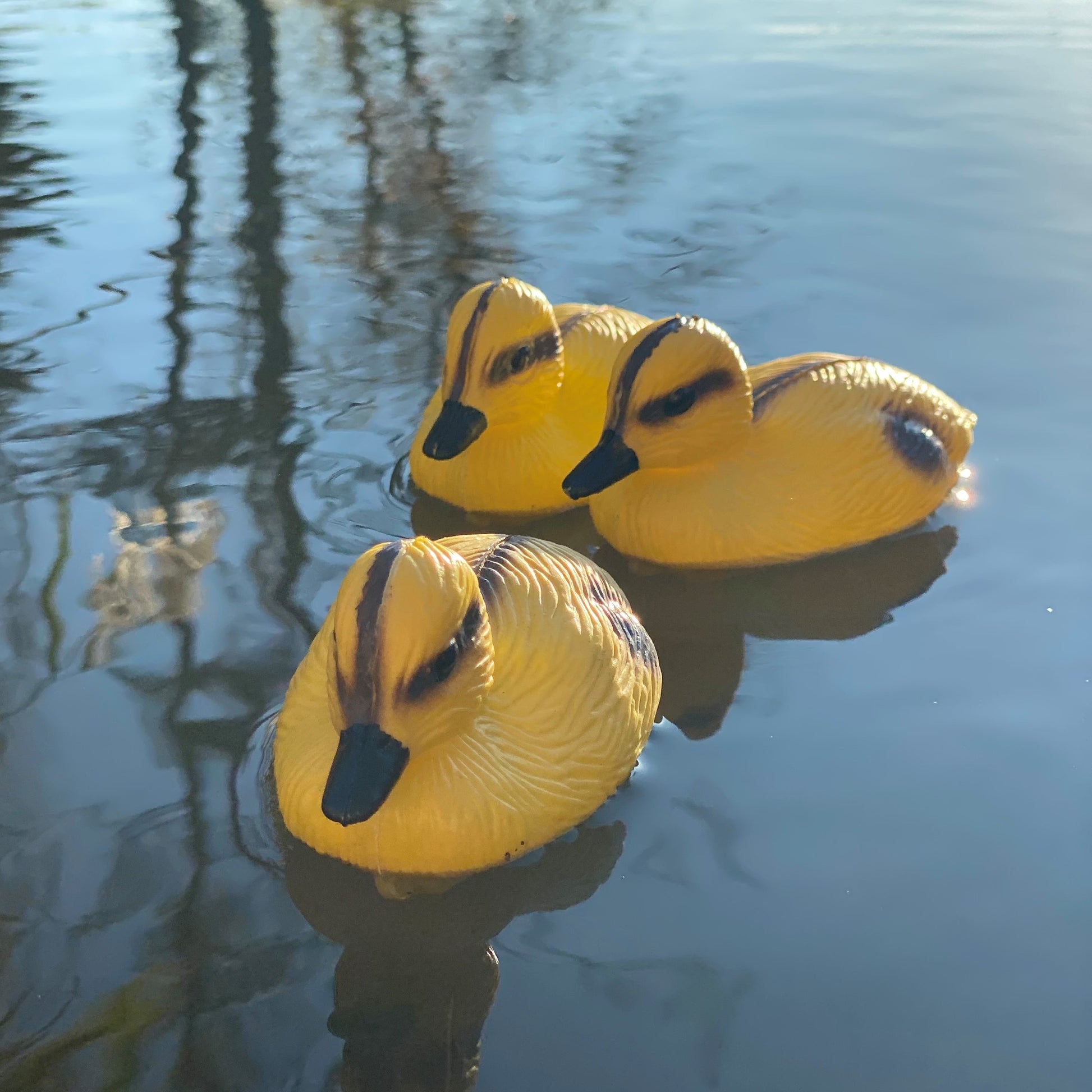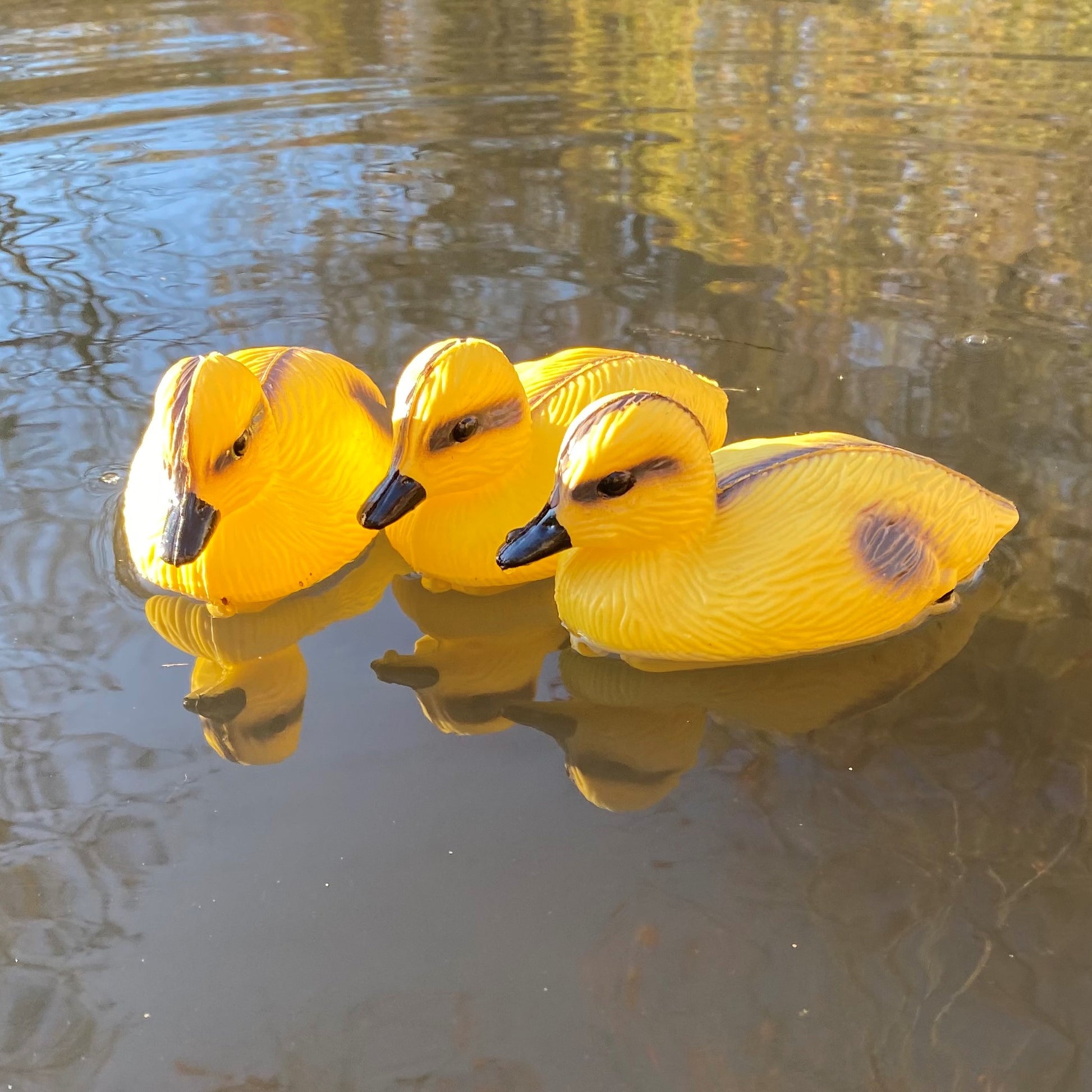 These replica yellow ducklings look real enough for you to double-take when released amongst the reeds.