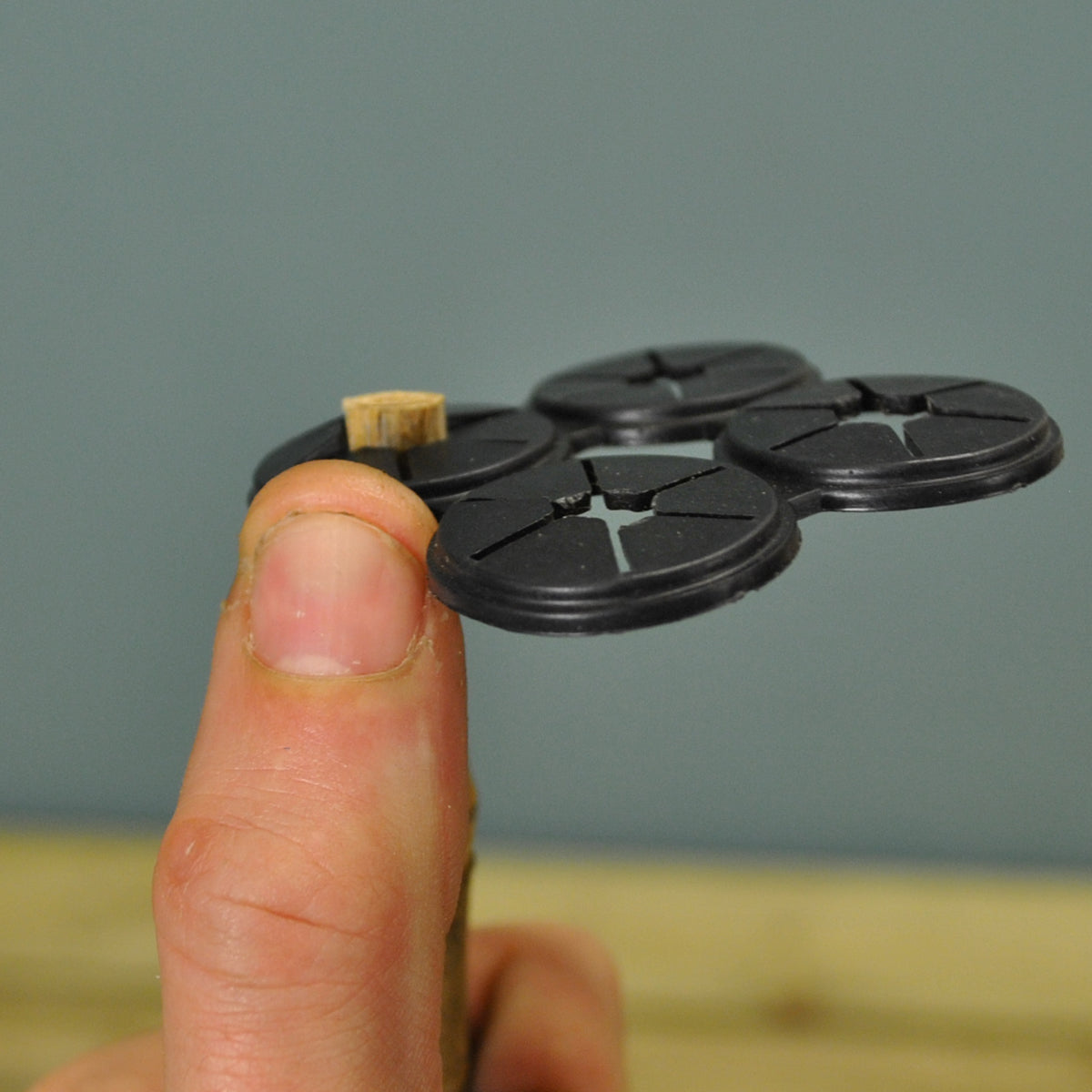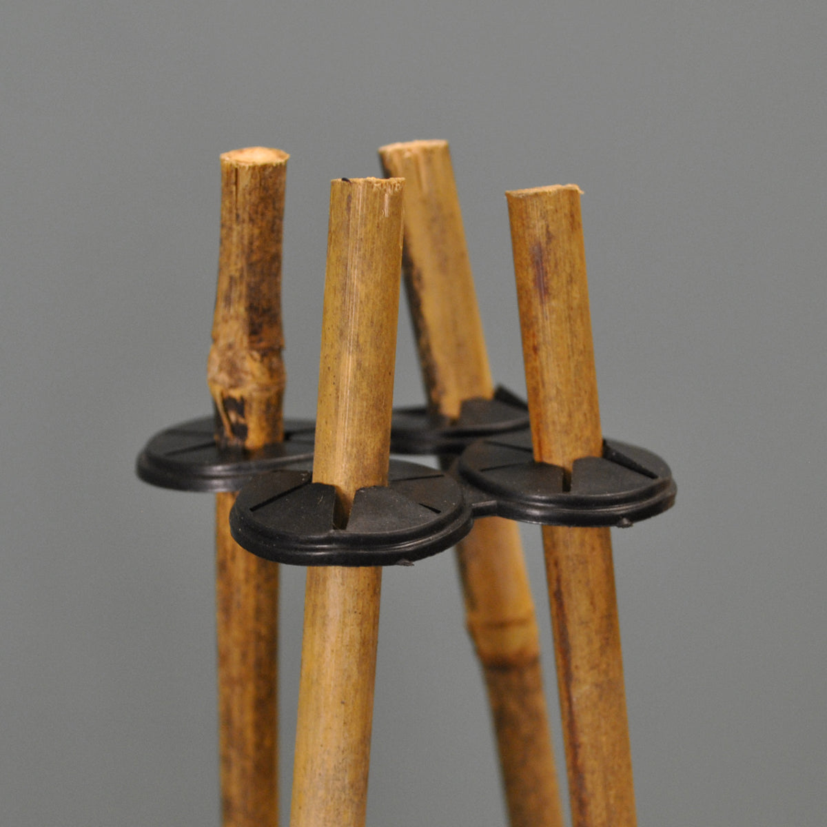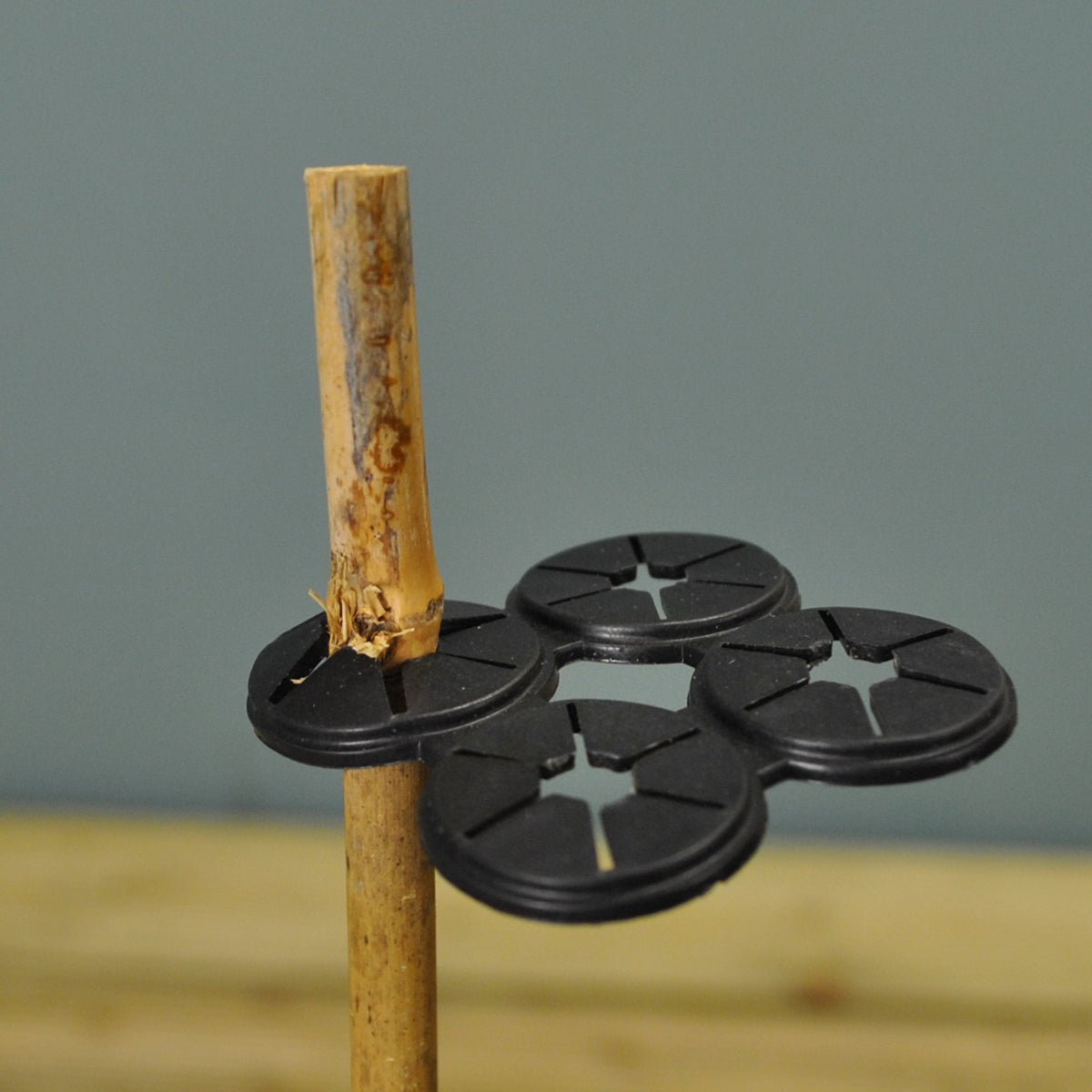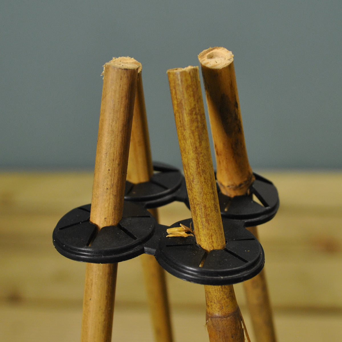 This clip holds most sizes of bamboo cane in place - the 4 notches allow the bamboo to be positioned easily and adjusted if need be. The clips are designed to hold up to 5 bamboo canes together - one in each circular holder and one in the centre.