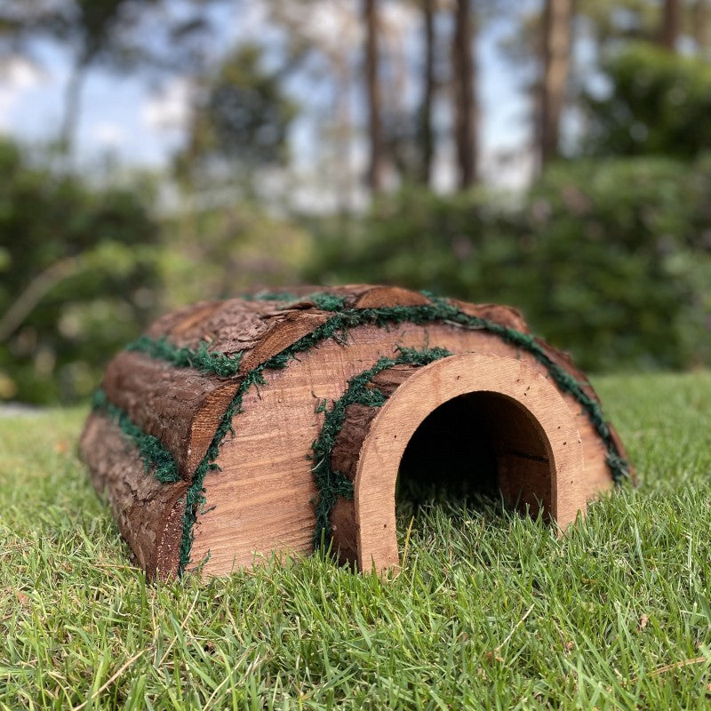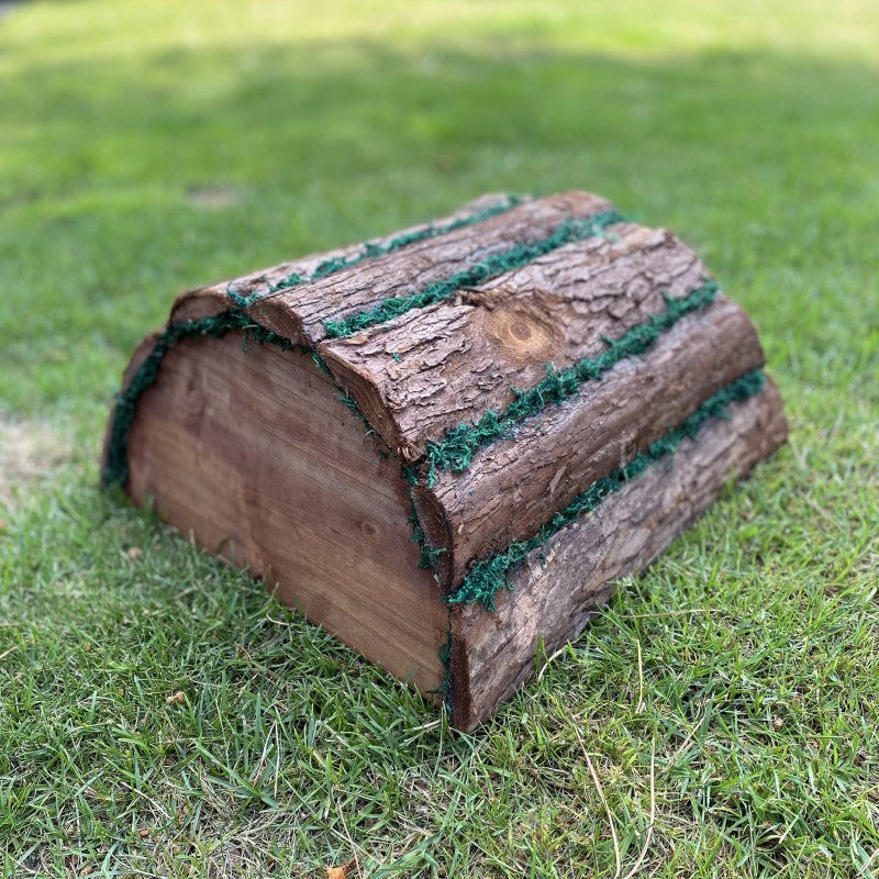 Handmade from natural barkwood with moss for added camouflage, this hogitat provides the ideal place for hedgehogs to shelter from rain or even hibernate for the winter.